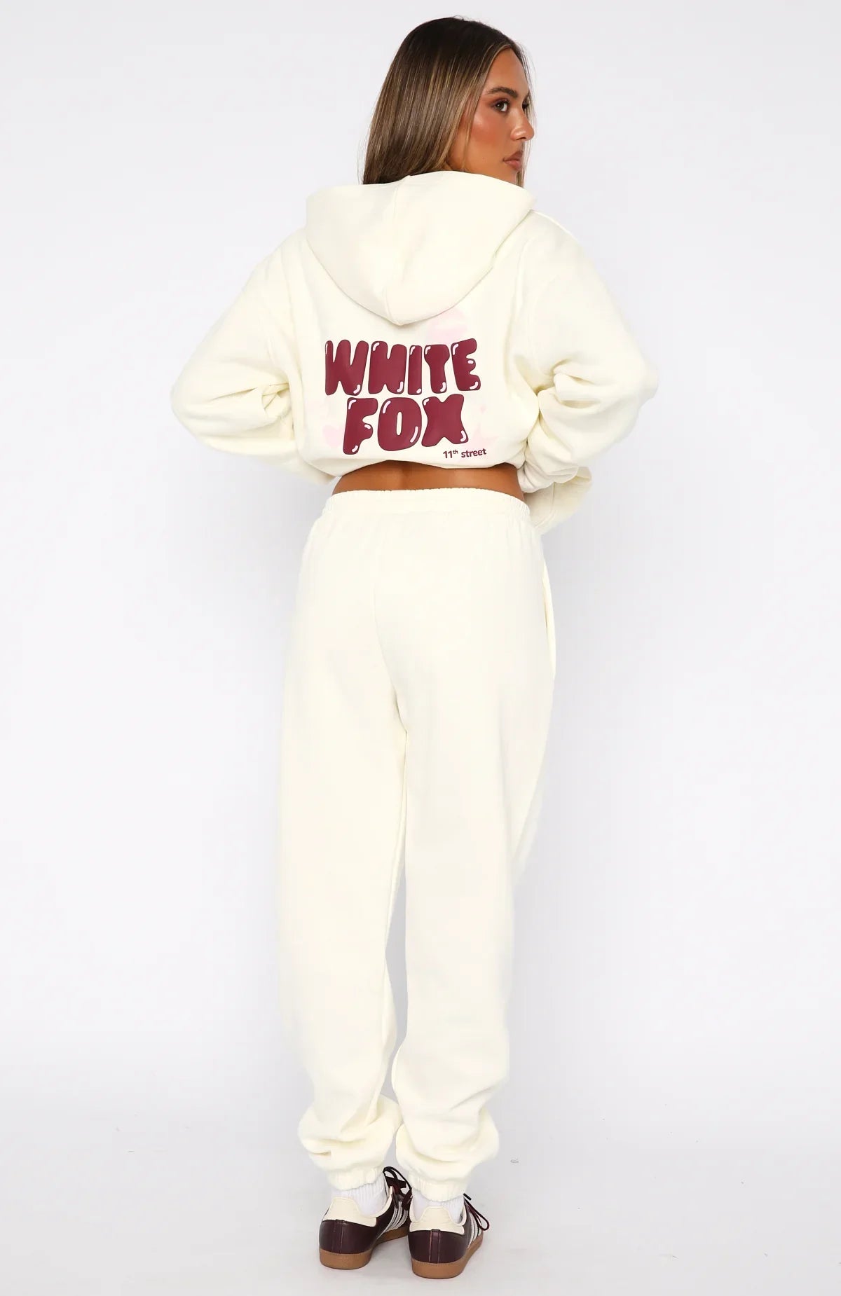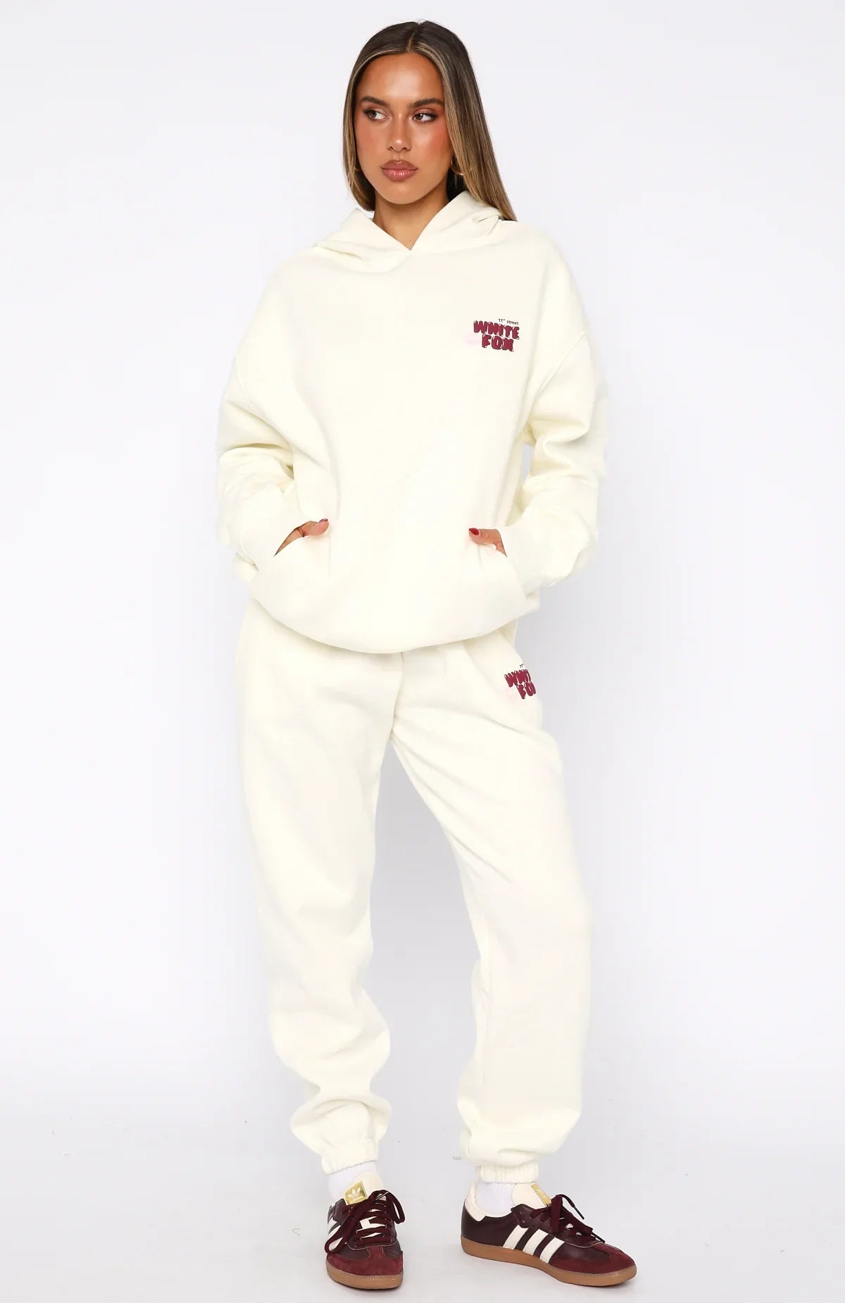 The 11th Street Sweet Kisses Sweatpants Cake Batter features a high elasticated drawstring waistband, elasticated ankles, side pockets, soft fleece fabric for extra comfort and logo detailing on side of leg. You can complete the tracksuit with the matching 11th Street Sweet Kisses Oversized Hoodie Cake Batter for the full vibe!