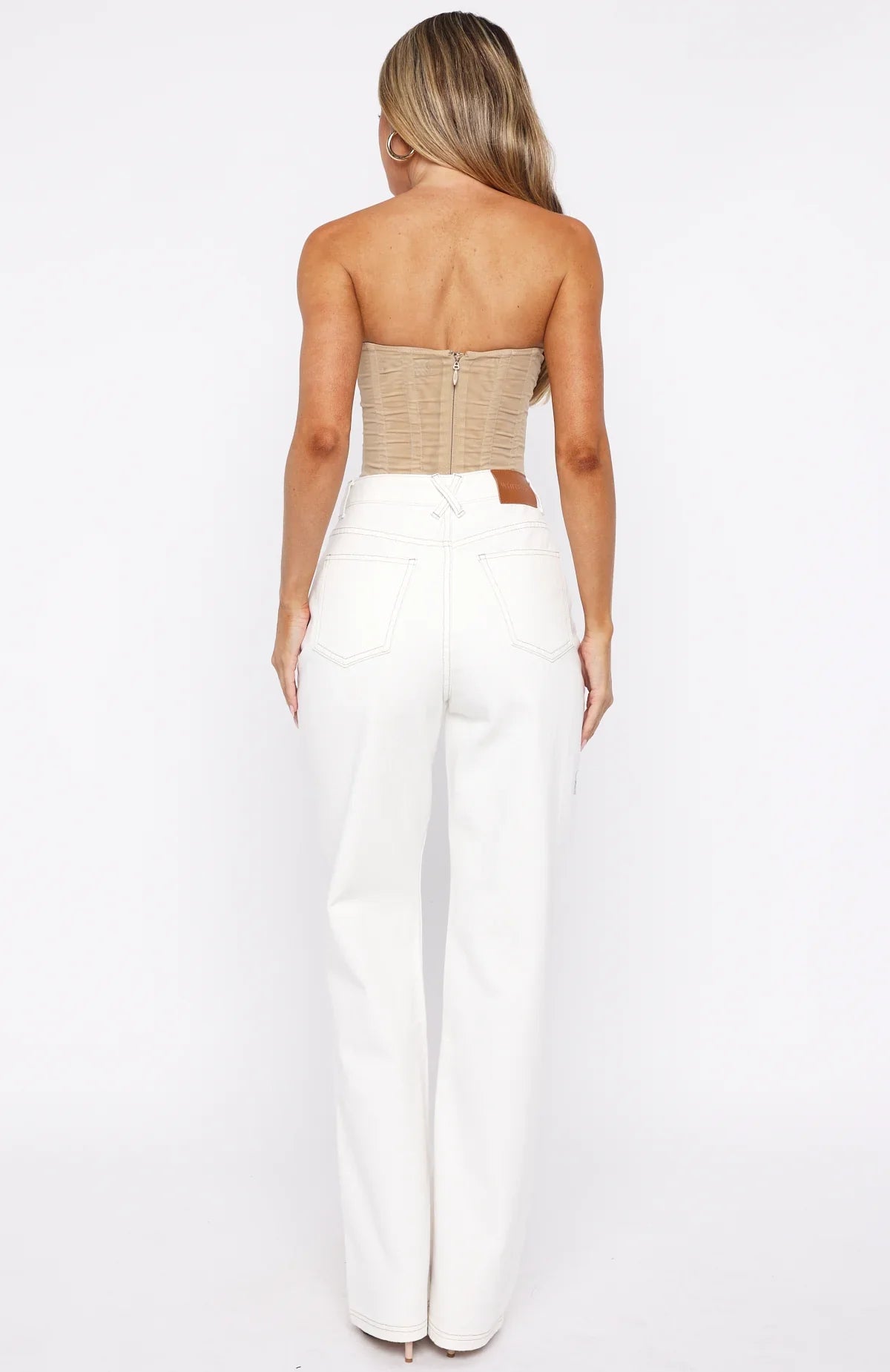 The Alyssa High Rise Straight Leg Jeans in Off White are a timeless wardrobe essential. Featuring a straight-leg high rise silhouette, belt loops, a button and zipper closure, and a classic 5-pocket layout, they provide both functionality and a sleek look. Finished off with a subtle faux leather White Fox label at the back and the unlined design ensures breathability. Pair these jeans with a basic tank top, sandals, a shoulder bag, and your favorite sunnies for a chic, laid-back look.