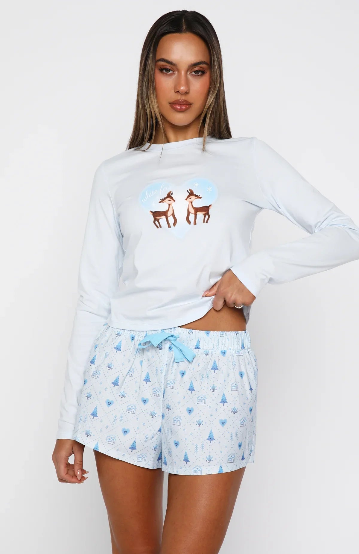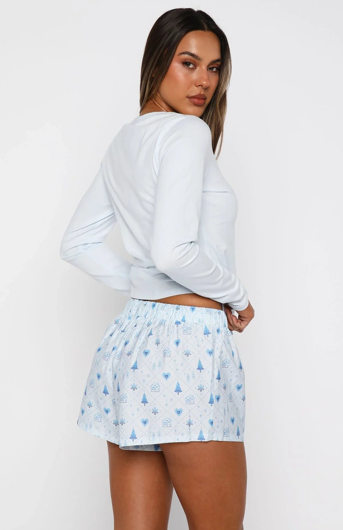 Cosy nights and Christmas lights! The Baby It's Cold Outside Pyjama Shorts Morning Frost features a thick elasticated waistband with drawstring, a relaxed silhouette, and a festive design. Light, unlined, and oh-so comfy. Style with the matching Baby It's Cold Outside Long Sleeve Pyjama Top Morning Frost.