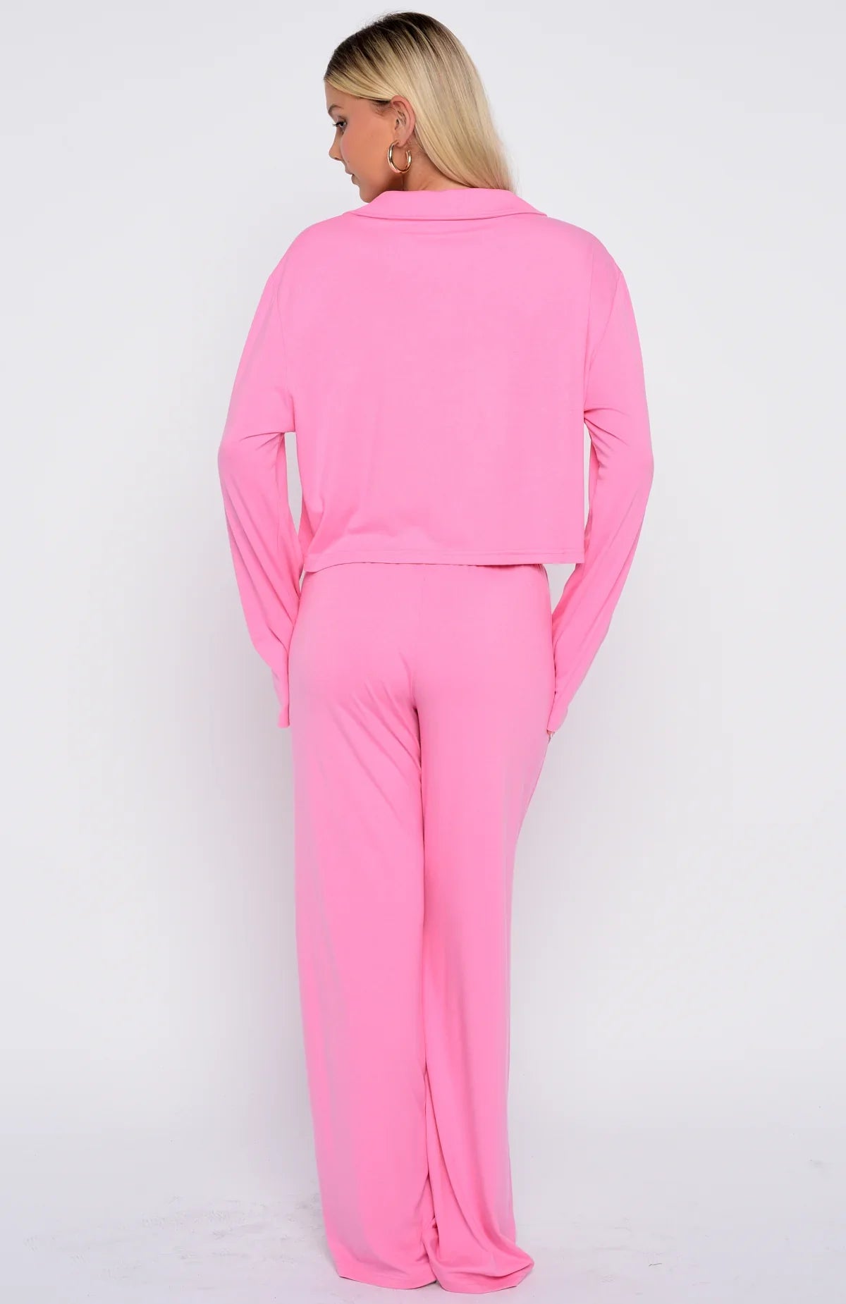 Breeze into bedtime with our Bedtime Bliss Pyjama Set in Bubblegum Pink! The long-sleeve top features a classic collared neckline with button‑front styling, a relaxed silhouette for maximum ease, and a stitched graphic across the front pocket for a cute finishing touch. The matching pants offer a thick, elasticated waistband and wide-leg cut for effortless movement all night long. We are obsessed!