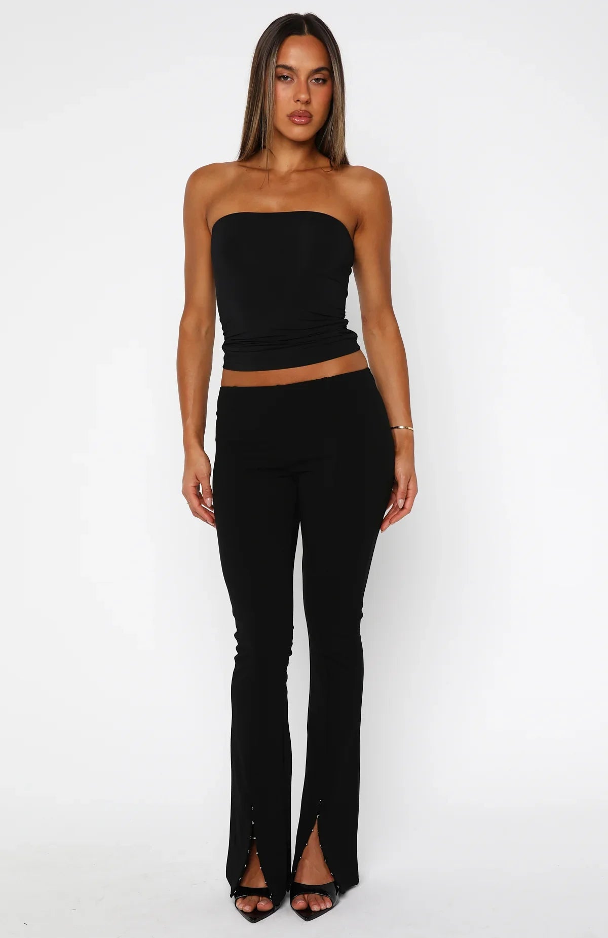 Not mad just throwing fits in the Burning Obsession Pants in Black! These high-stretch unlined, flared pants sit comfortably on a slim elastic waistband, and feature a hook-and-eye split at the front hem for added flair. Pair them with a simple top and heels to make a bold statement.