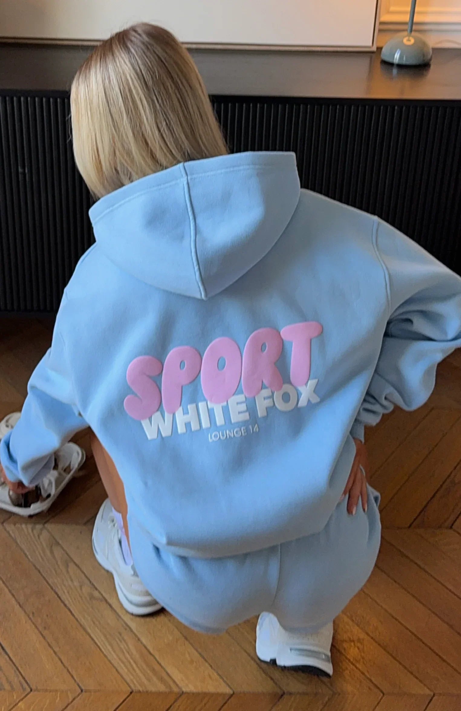 The joy of being in loungewear! The Club 14 Peyton Oversized Hoodie Blue is designed with a relaxed hood, slouched shoulders and ribbed hems, which round out an oversized silhouette. Featuring long sleeves, a roomy front pocket, and an unlined fleece interior, this hoodie delivers a cozy feel. Finished with puff print White Fox text side front and centre back. Style with the matching Club 14 Peyton Lounge Shorts for a comfortable and cute look we love.