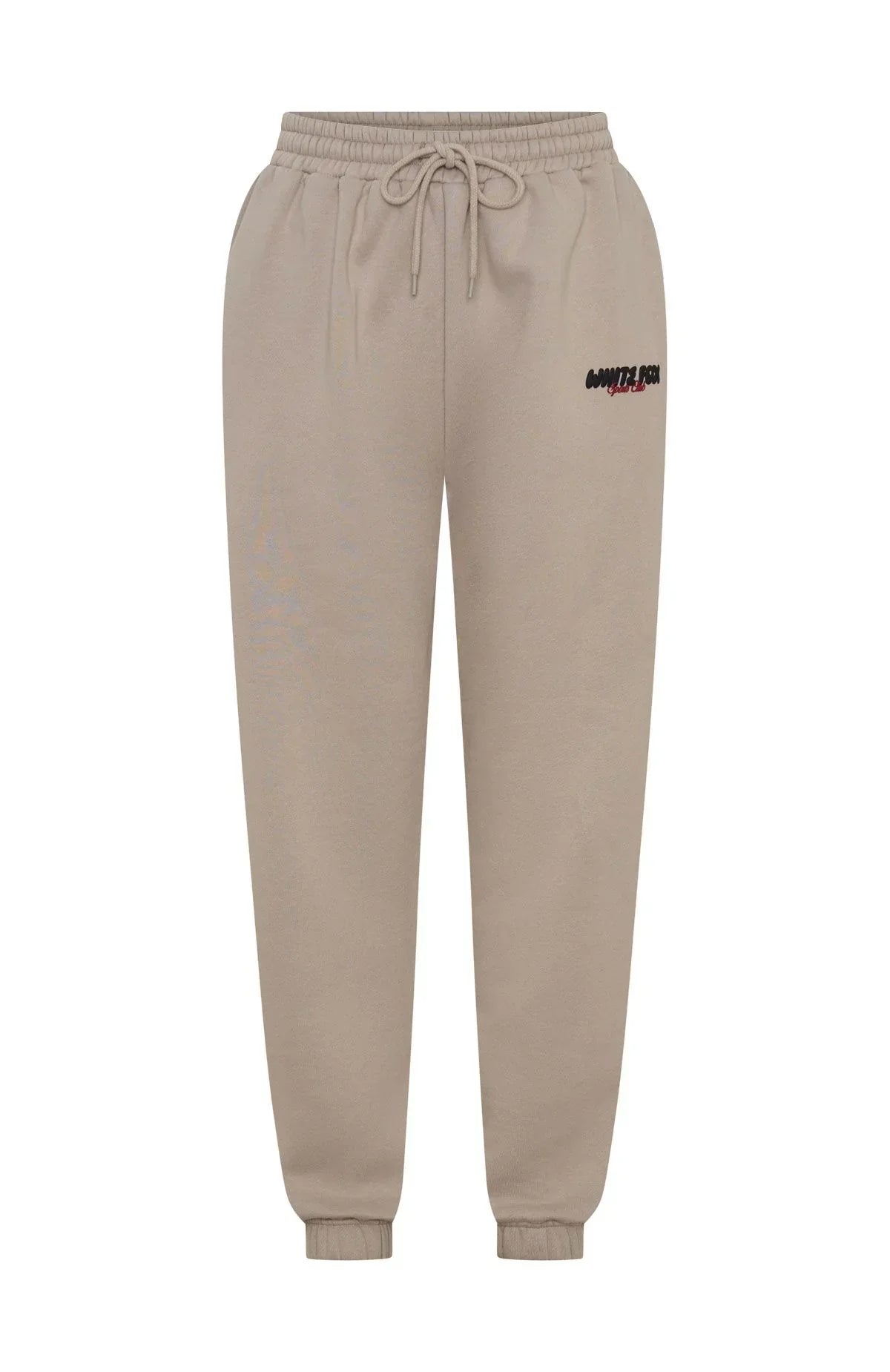 Rainy days call for the Club 14 Trinity Sweatpants Moon. Designed with a thick elasticated waistband featuring an external drawstring tie, side pockets, elasticated cuffed ankles, and a slightly oversized silhouette. The White Fox puff-print text at the side adds a signature touch, while the unlined fleece interior ensures a cozy feel. Style with the matching Club 14 Trinity Oversized Hoodie for the perfect lounging all day fit.