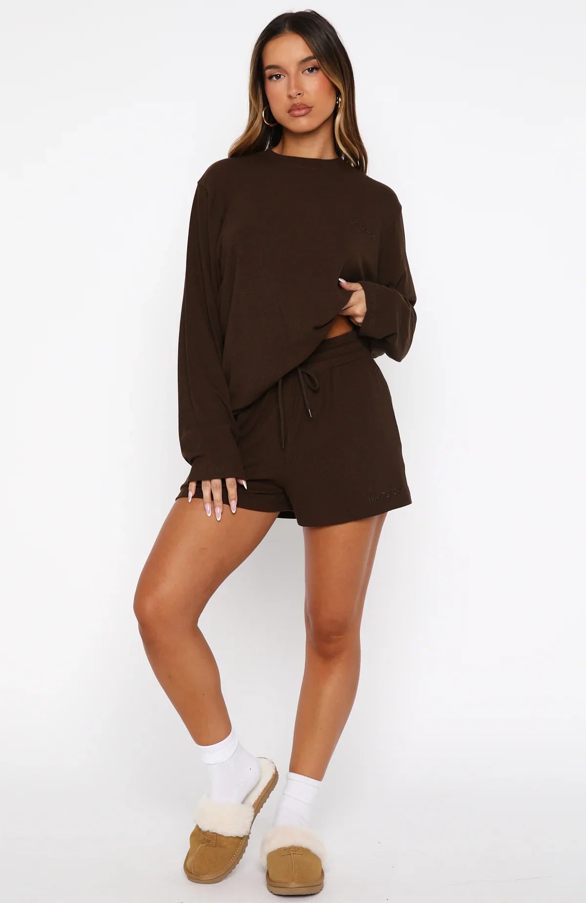 Make your self-care moments feel even sweeter with the Come A Long Way Soft Lounge Ribbed Shorts in Chocolate. The thick elastic waistband with drawstring and soft ribbed fabric give a comfy fit. Side pockets add practicality while embroidered White Fox text adds subtle style. Style with the matching Come A Long Way Soft Lounge Long Sleeve Ribbed Tee Chocolate for lounging, chill weekends, or staying cozy at home.
