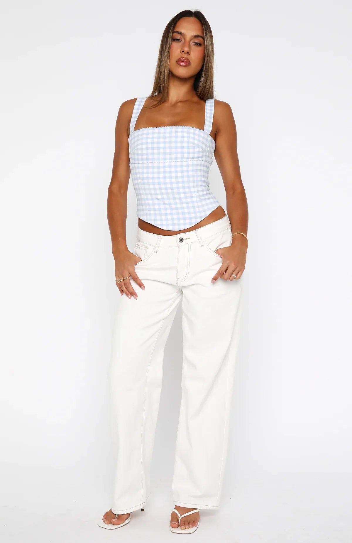 Picky and i picked the Crossed Your Mind Bustier in Baby Blue! With thick shoulder straps and a square neckline trimmed in scalloped lace, plus a matching under bust lace seam, this piece brings charm. Internal boning gives structure, while the back zipper with hook-and-eye closure makes it easy to wear. Fully lined in a sweet gingham fabric. Style it with your favourite denim, sandals, and layered gold jewellery for the perfect Sunday-market fit.