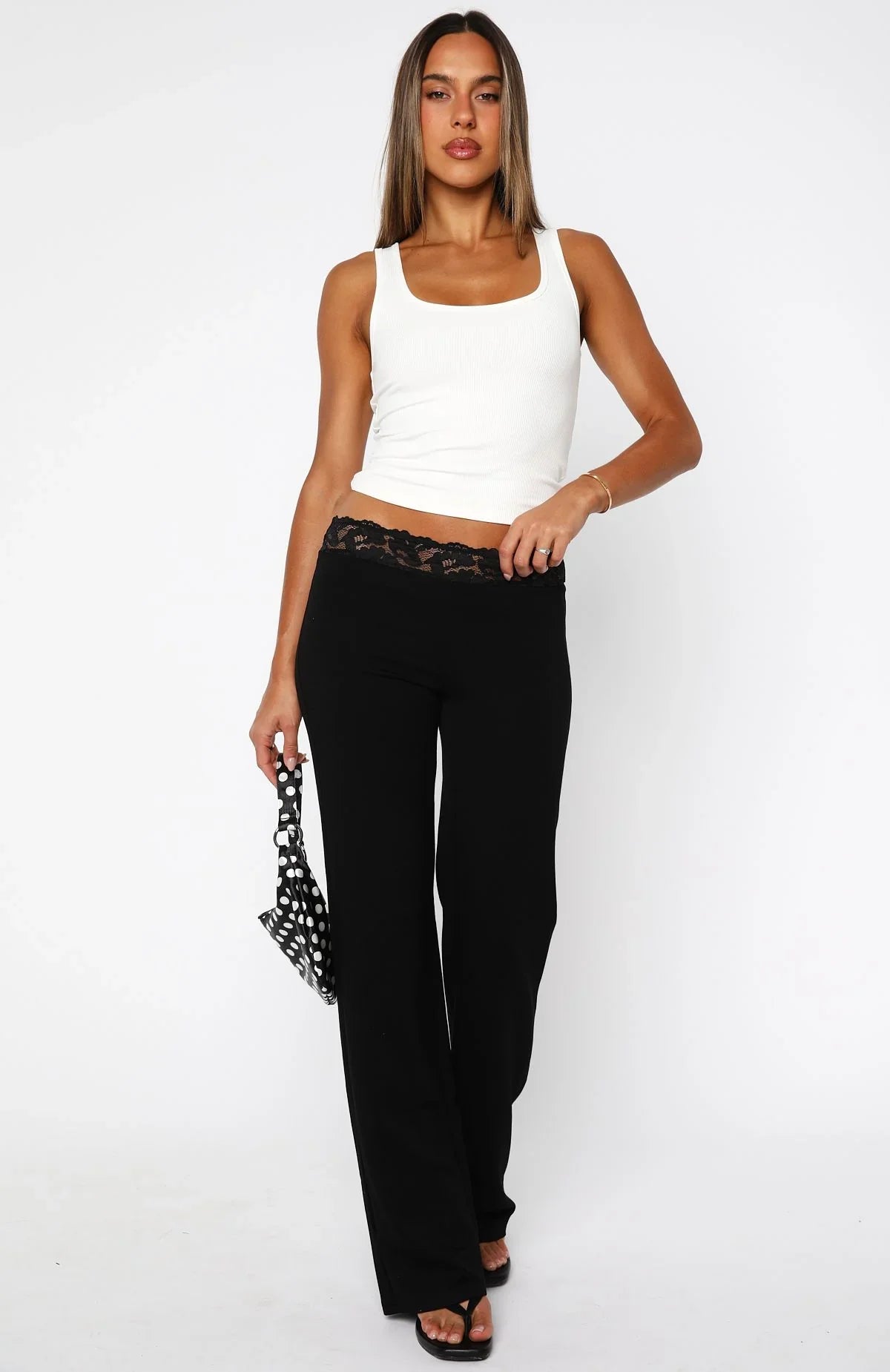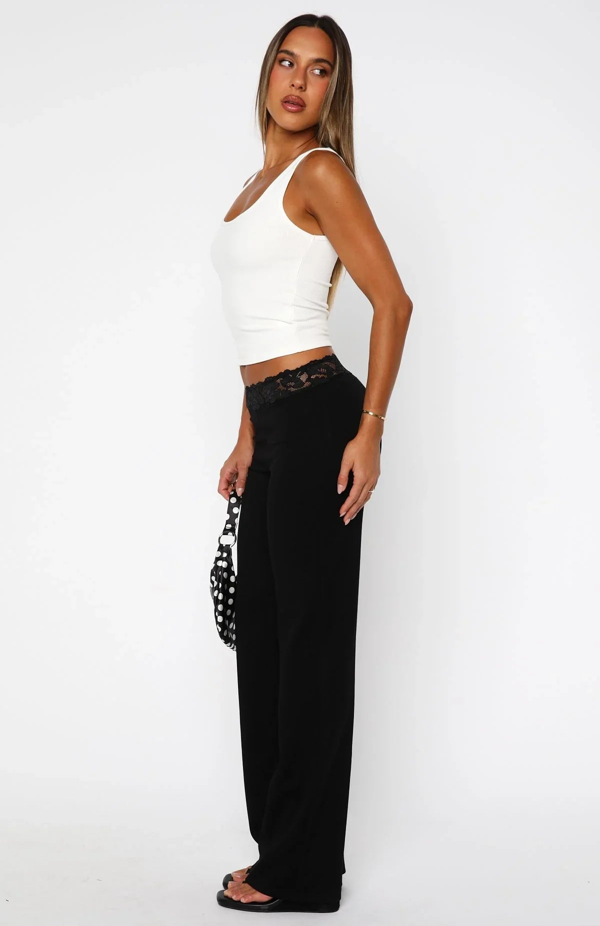 Where words fail, your fit speaks! The Cry Baby Pants Black is designed with a thin elastic waistband which seamlessly merges with a sheer lace overlay. The straight-leg silhouette skims the body in a high-stretch, unlined fabric for a sleek fit. Style them with a basic tank, kitten heels, and layered gold jewellery for a rock-chic look that speaks volumes.
