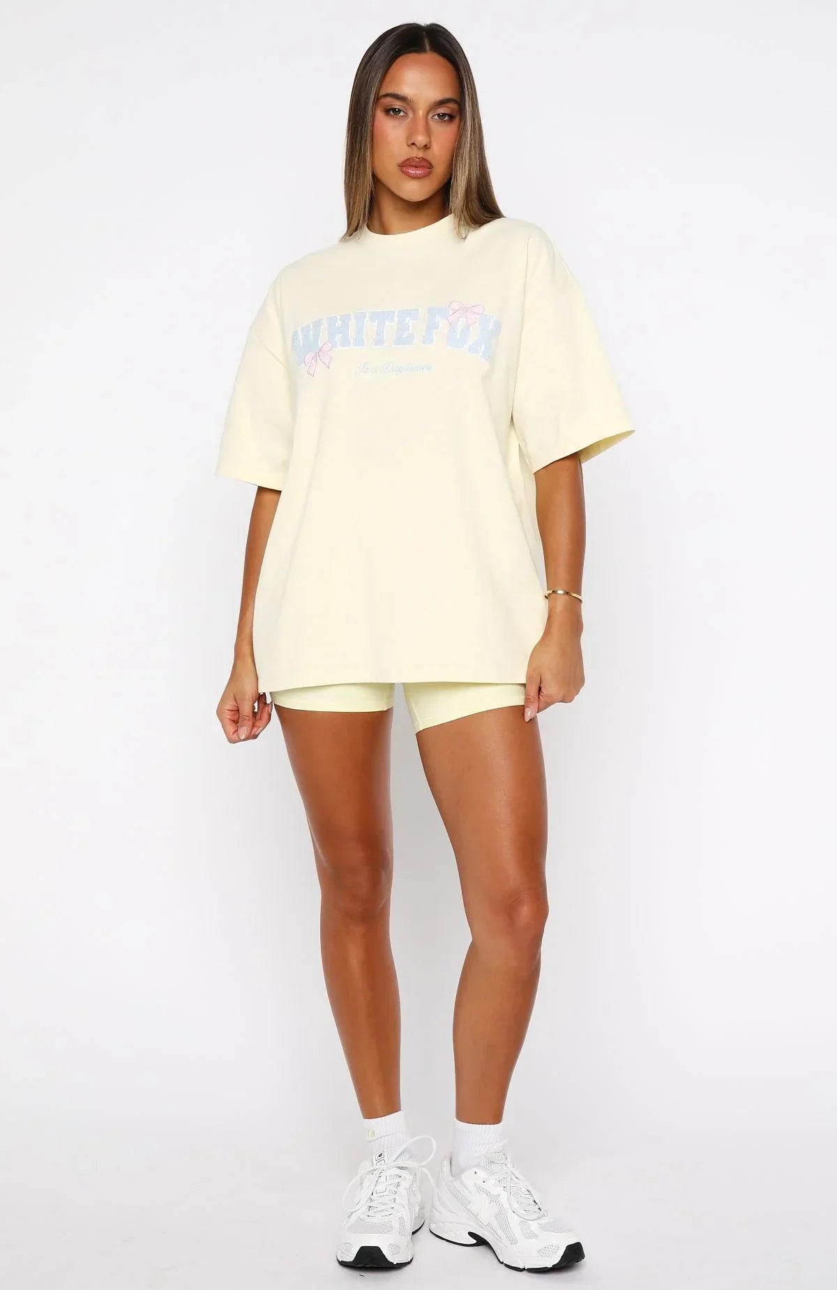 For when you want to look like the main character… even on the couch! The Daydreamers Madeline Oversized Tee Lemon is tailored with a classic crew neckline, relaxed slouched shoulders, breezy short sleeves and relaxed silhouette. Finished off with a White Fox Borg text at the front. Pair with the matching Daydreamers Madeline Wide Leg Sweatpants Lemon for the cutest fit!