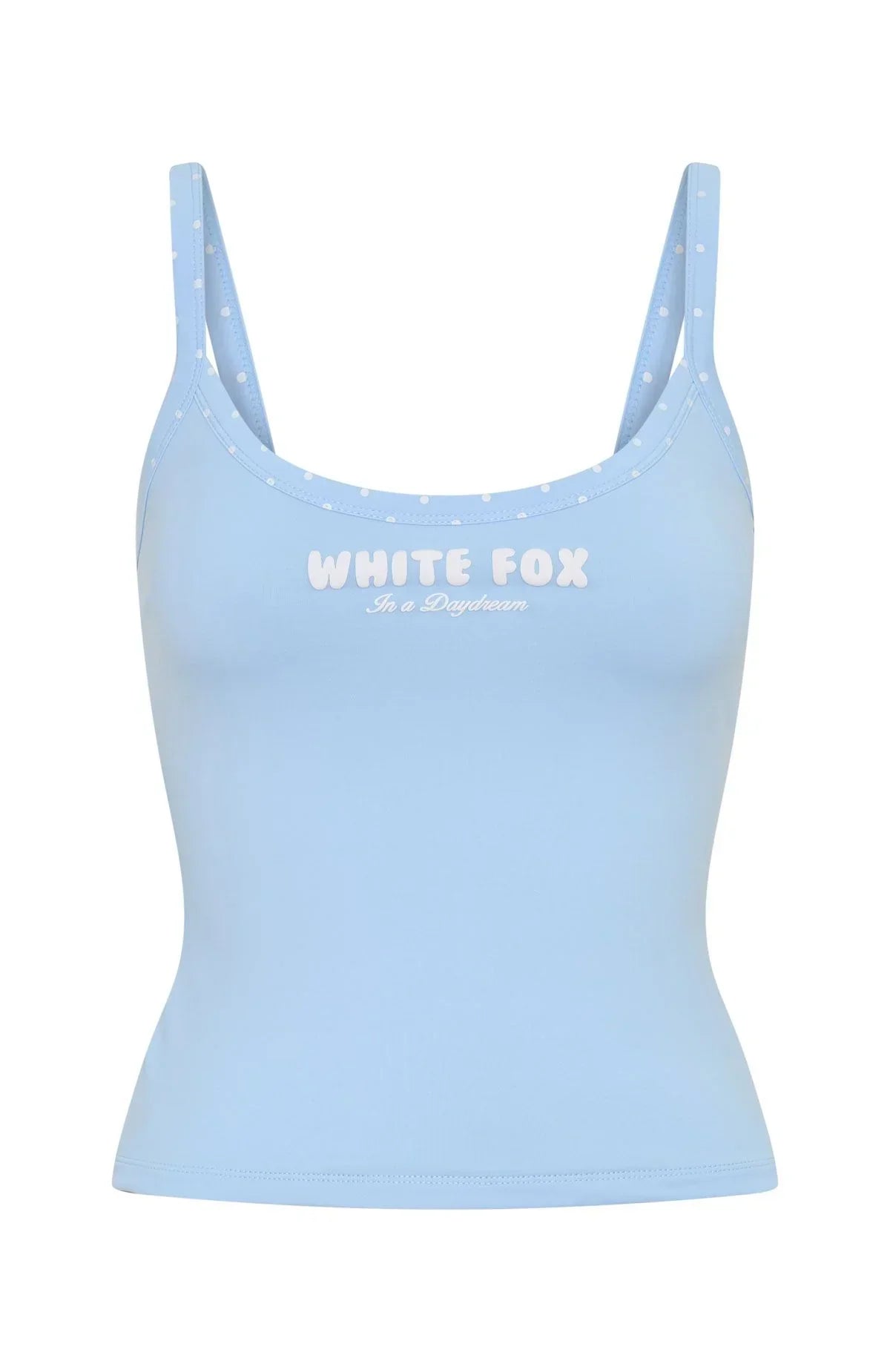 This dreamy tank is your ticket to that effortless cool girl energy! The Daydreamers Nadia Tank in Baby Blue features thick shoulder straps with polka dot contrast dealing, scooped neckline, mesh lined material, figure hugging fit and puff print logo detailing centre front. Layer it or style it solo, this tank will be your ultimate go to!