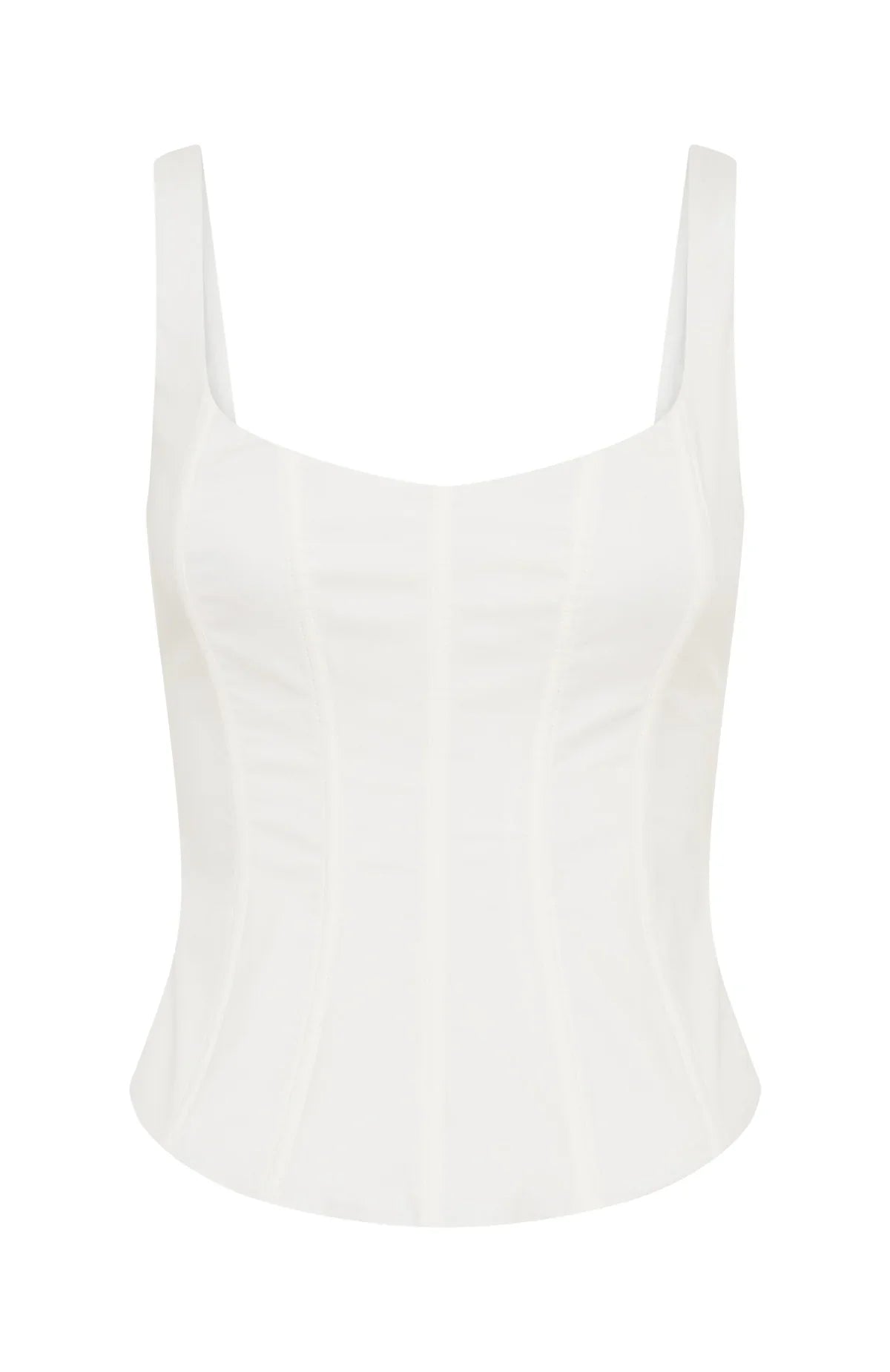 Santa's favourite! The Empire Energy Bustier White features thick shoulder straps, a flattering scoop neckline, structured internal boning down the bodice, a secure back zipper with hook-and-eye closure, and is fully lined for a flawless finish. Style with the matching Empire Energy Midi Skirt White, heels and chic layered gold jewellery.