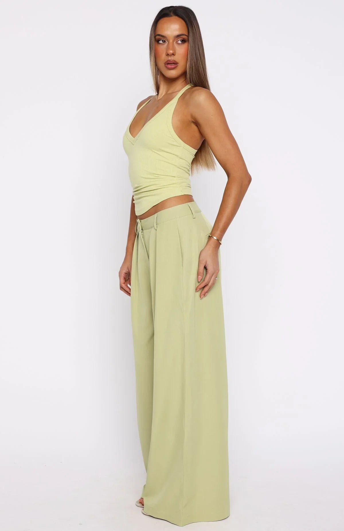 A feminine twist on everyday pants! The Figuring Out Feelings Pants in Chartreuse feature a fixed waistband with belt loops, a button and zip closure, and front pleats for a polished silhouette. Wide‑leg cut and unlined, they include functional side pockets for effortless style that carries you from desk to dinner. Style with the matching Figuring Out Feelings Tank Chartreuse and sandals for a laidback look we love.