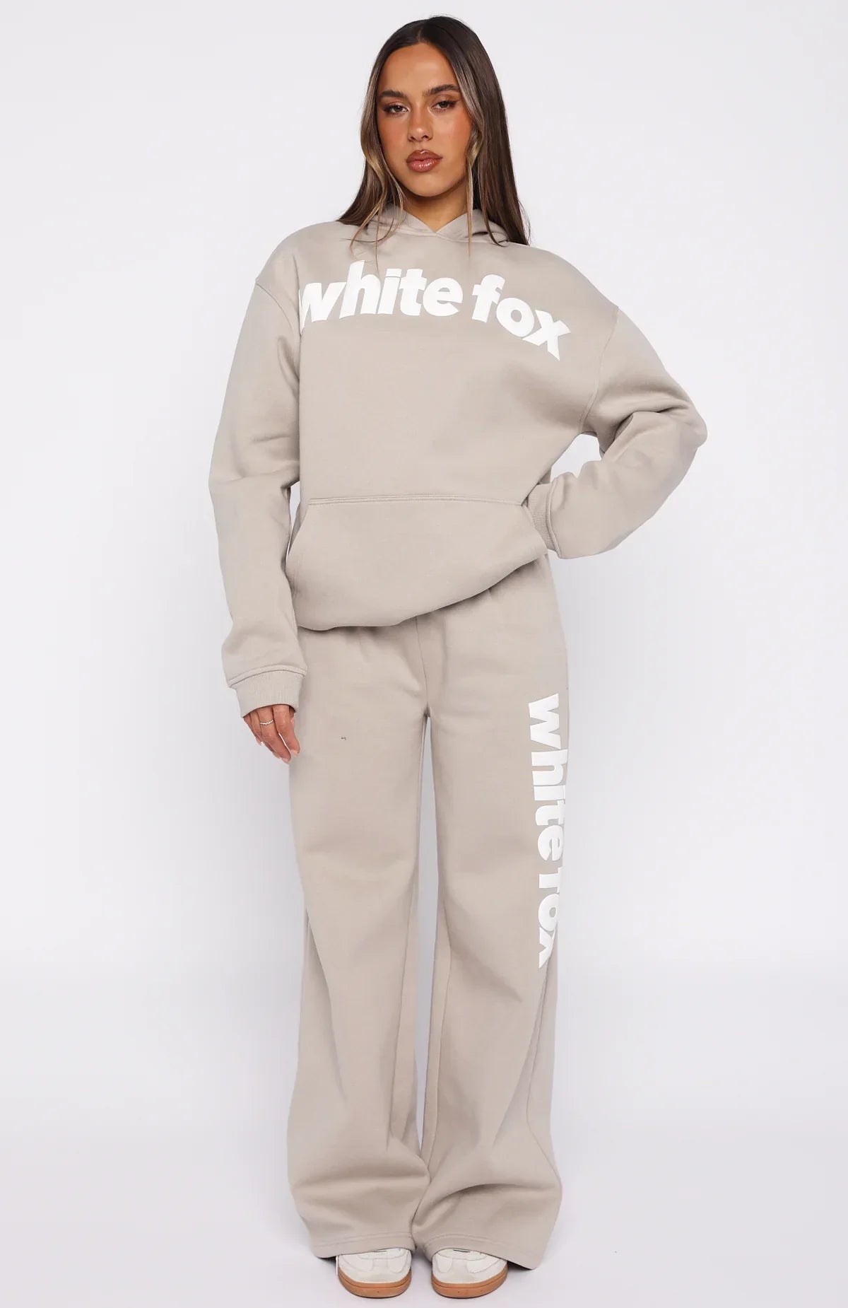 Sundays just got a whole lot cooler and cozier! The From The Archives Kenzie Oversized Hoodie Moon is designed with a relaxed hood, slouched shoulders and ribbed hems which round out an oversized silhouette. Featuring long sleeves, a roomy front pocket, and an unlined fleece interior, this hoodie delivers a cozy feel. White Fox distressed text embellishes the centre front. Style with the matching From The Archives Kenzie Wide Leg Sweatpants Moon.
