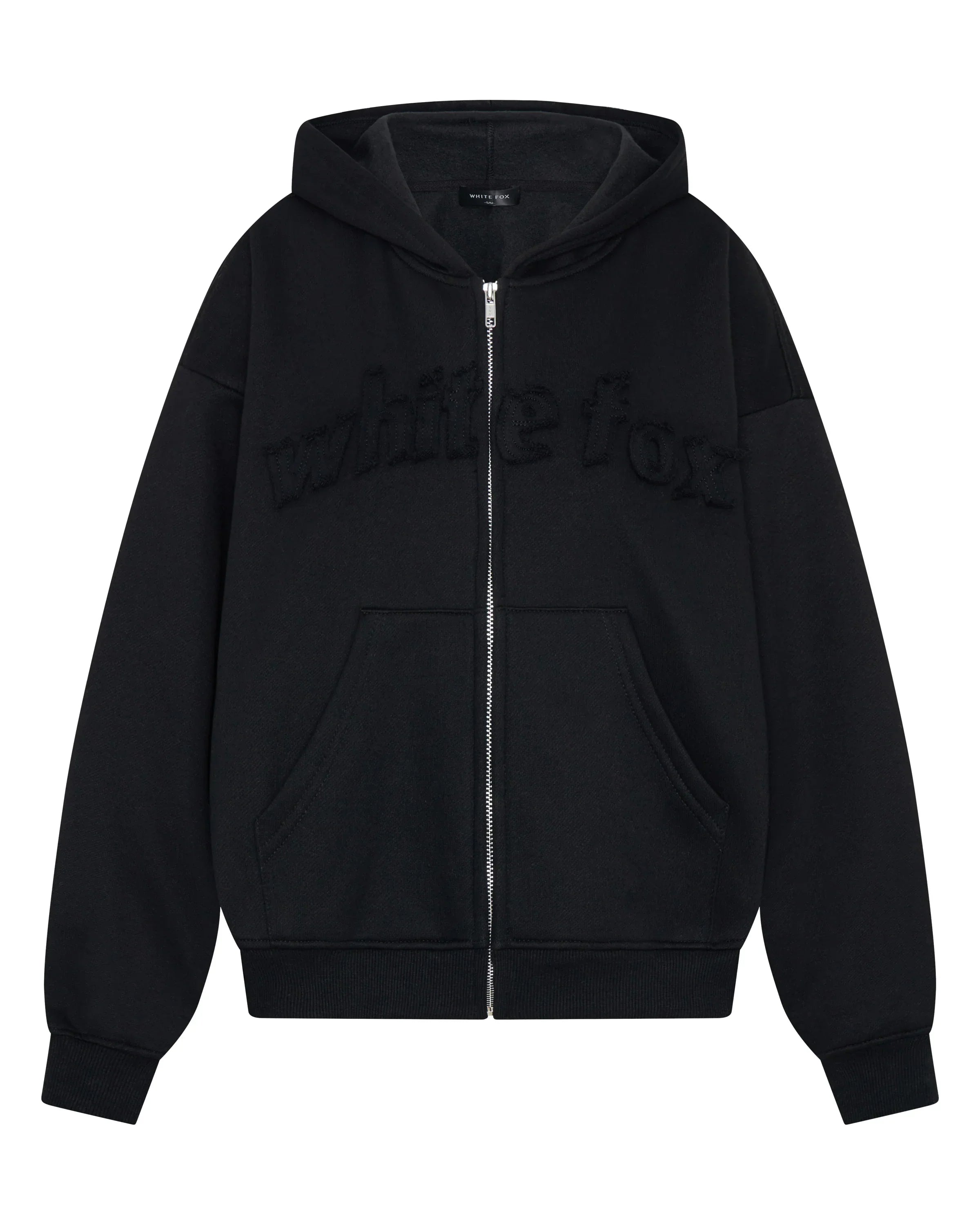 Sundays just got a whole lot cooler and cosier! From The Archives Lexi Boxy Zip Front Hoodie Black is designed with a relaxed hood, slouched shoulders and ribbed hems which round out an boxy silhouette. Featuring long sleeves, front zipper closure, a roomy front pocket, and an unlined fleece interior, this hoodie delivers a cozy feel. White Fox distressed text embellishes the front. Style with the matching From The Archives Lexi Sweatpants Black.