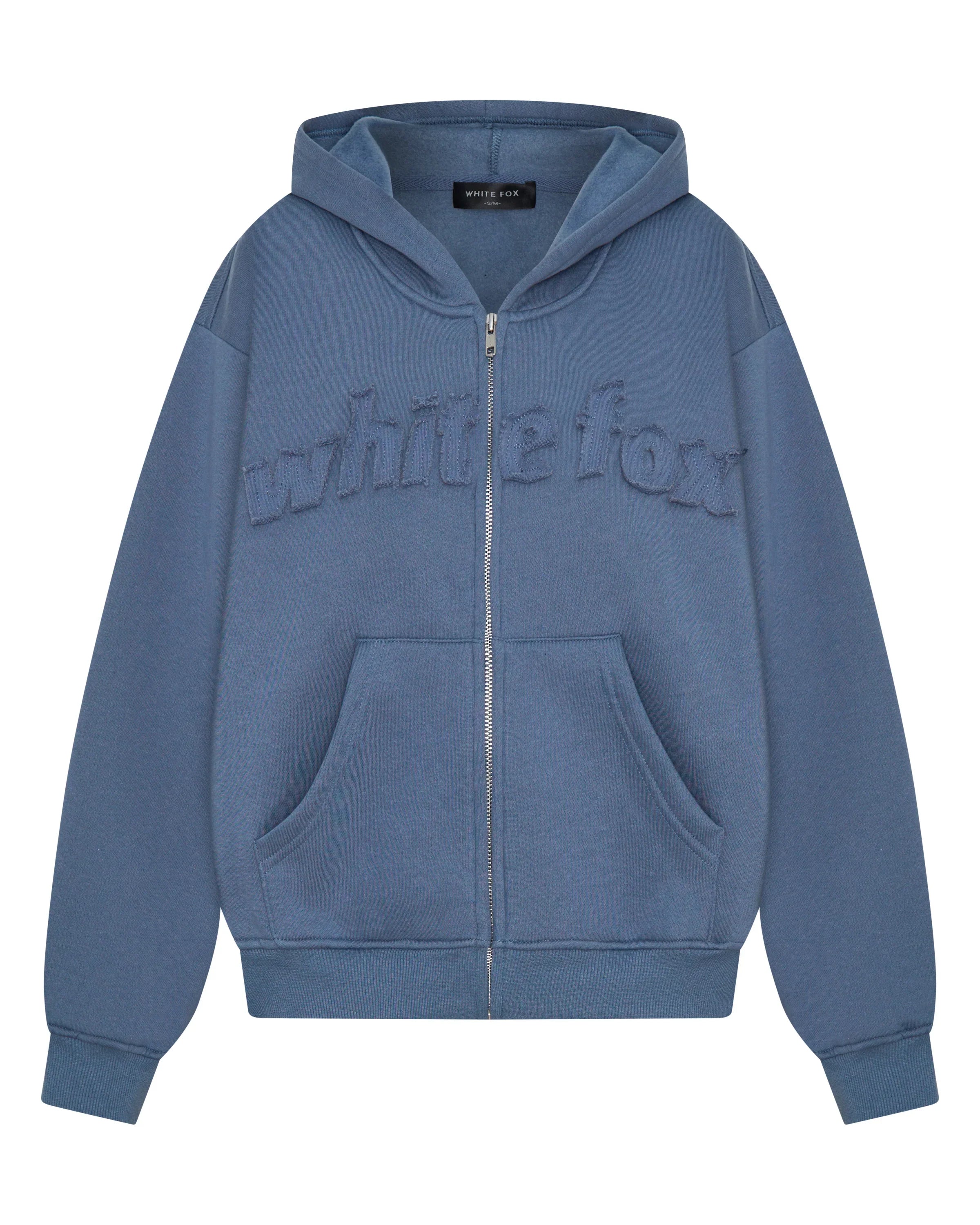 Sundays just got a whole lot cooler and cosier! From The Archives Lexi Boxy Zip Front Hoodie Ocean is designed with a relaxed hood, slouched shoulders and ribbed hems which round out an boxy silhouette. Featuring long sleeves, front zipper closure, a roomy front pocket, and an unlined fleece interior, this hoodie delivers a cozy feel. White Fox distressed text embellishes the front. Style with the matching From The Archives Lexi Sweatpants Ocean.