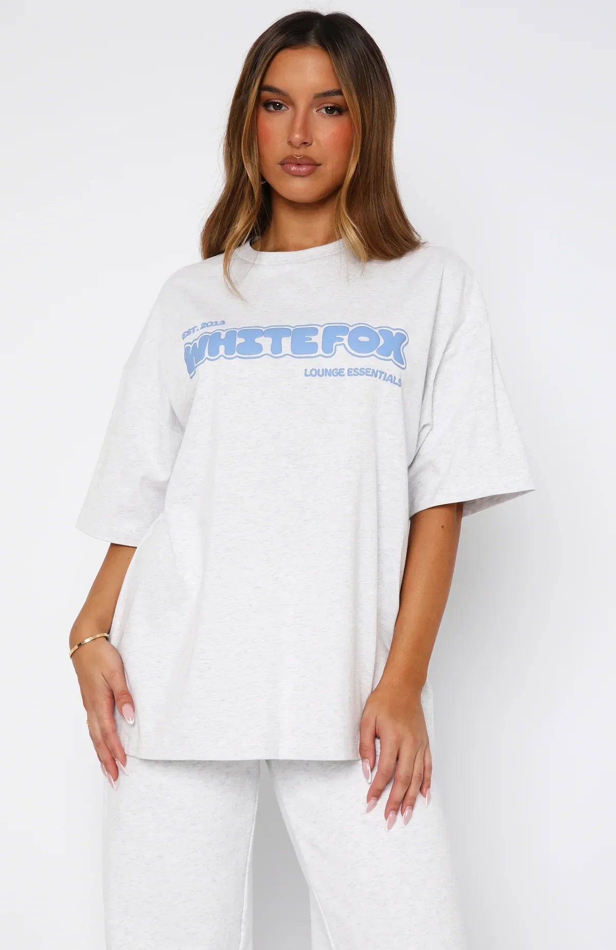 Slip into the Give It A Try Oversized Tee in Grey Marle for the perfect combo of cute and cosy! Features s round neckline, signature puff print White Fox text across centre front, slouched shoulders, short sleeve and oversized fit. Feel you best by pairing with the matching Don't Even Try Wide Leg Sweatpants in Grey Marle for colder days!