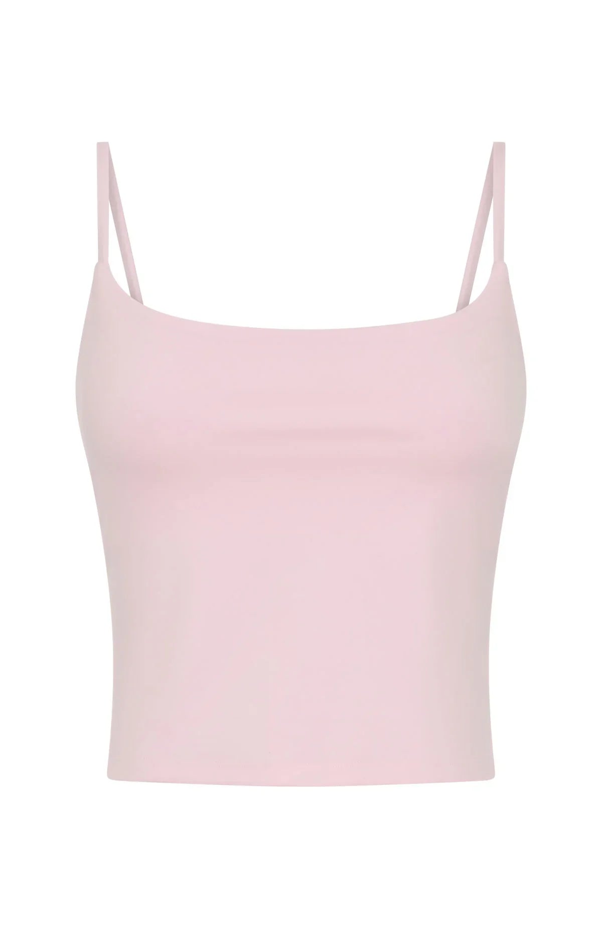 Glide through your practice in the Glide Active Tank in Ballet Pink. Designed with thin adjustable straps and a flattering square neckline, it offers built-in bra support with removable padding for personalized comfort. Crafted from high-stretch fabric, this unlined crop features the WFA initials at the center back and a cropped length. Pair perfectly with the matching Redemption Foldover Shorts.