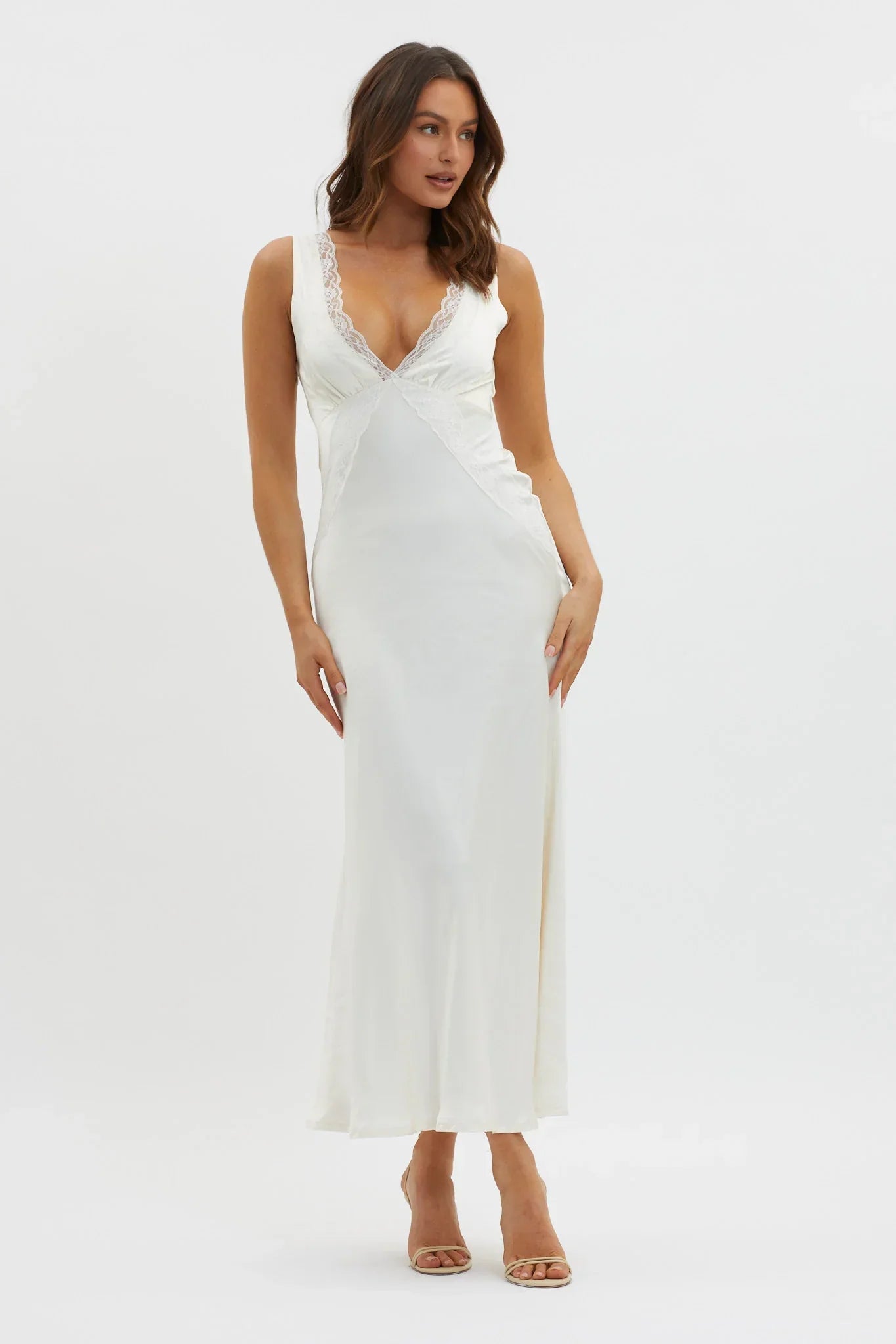Make them stop and stare in our gorgeous Ivonne maxi dress. We are in love with its pretty lace trim! Perfect for bridal events or a special occasion teamed with nude, strappy heels and a clutch for a look that will have you flooded with compliments.