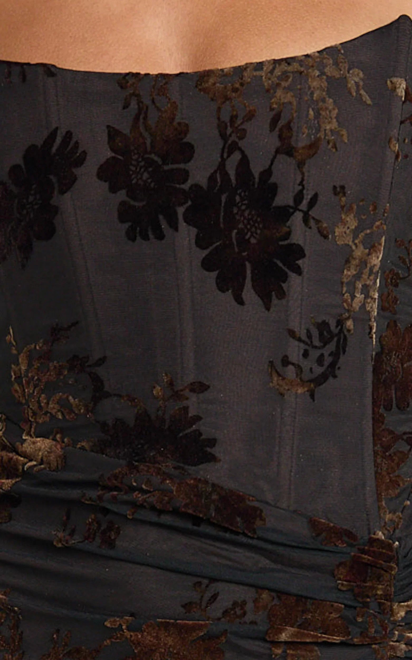 Sculpting in all the right places with a ruched corset vibe and moody burnout finish, this midi brings drama with zero effort. Think sleek, photo-ready silhouette that hugs, lifts and flatters, perfect for dinner-to-dance plans and every RSVP in between.