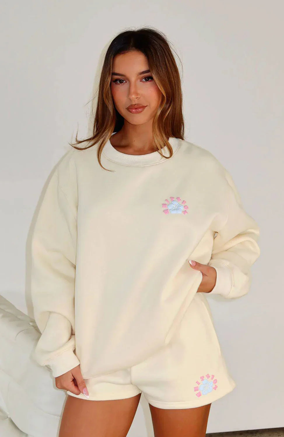 Keep your weekend casual with the Keep Blooming Lounge Shorts in Lemon. Features a loose relaxed fit with an elasticated waistband, side pockets, soft fleece fabric for extra comfort and puff printed logo front side. You can pair this with the matching Keep Blooming Oversized Sweater Lemon for cute and casual look!