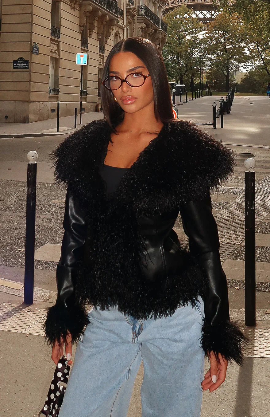 Leather weather! The Level Playing Field Pu Jacket Black features a luxurious faux fur hemline, cuffs, and collar, adding a touch of sophistication to its relaxed silhouette. Designed with long sleeves and a fully lined interior, it offers both comfort and style. Pair with your go-to denim jeans, statement heels and bag for the perfect fit to tour the Louvre Museum.