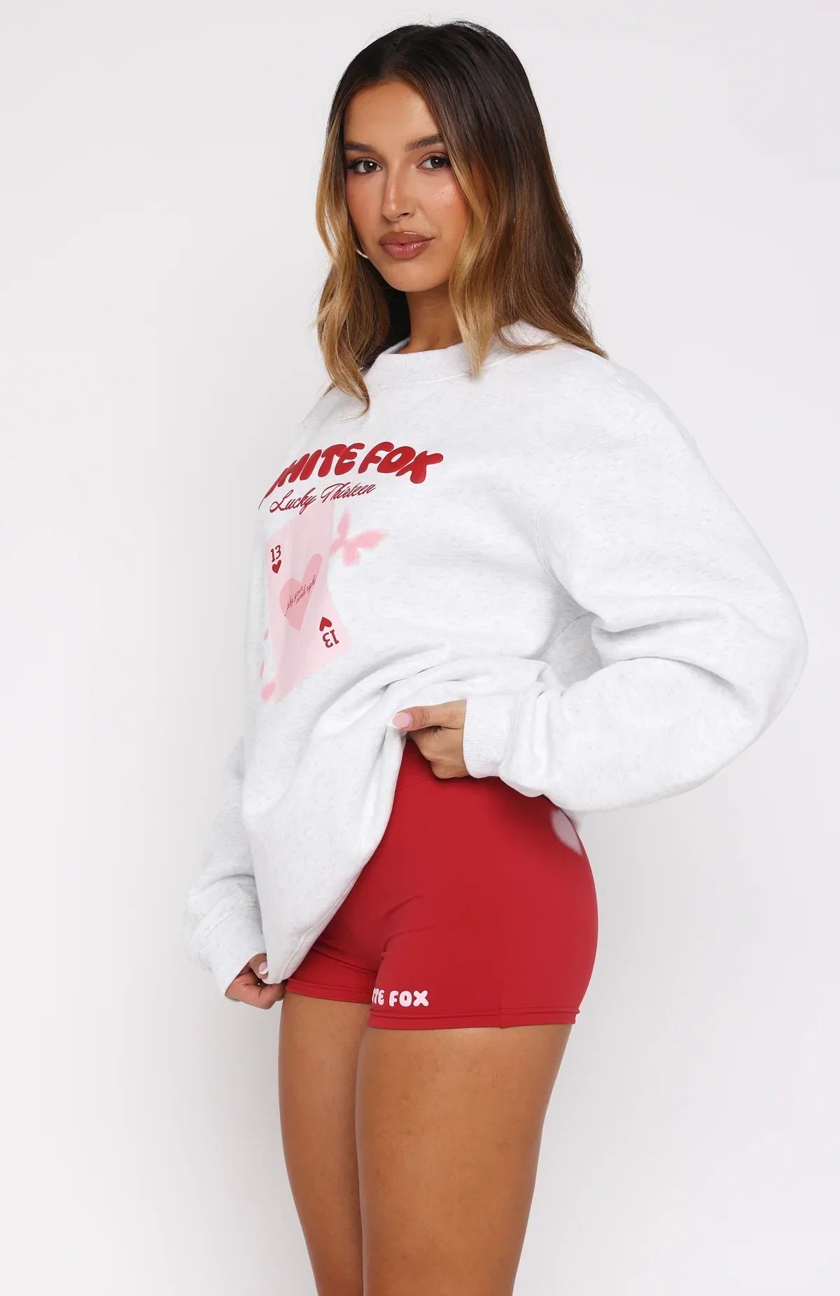 The Lucky Thirteen Charise Booty Shorts in Red are a NEED not a want! With a thick elastic waistband and high stretch fabric, these booty shorts offer a snug, flexible fit. They feature a playful White Fox puff print text at the front side and a cute love heart graphic at the back, unlined and effortlessly comfy. Style with your fav Lucky Thirteen hoodie and sunnies for a cheeky look we love!