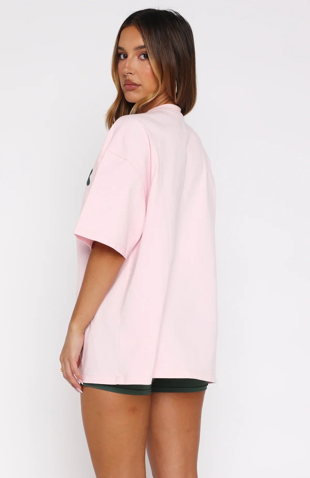 Our kind of weekend fit! The Lucky Thirteen Charise Oversized Tee Soft Pink is tailored with a classic crew neckline, relaxed drop shoulder design, breezy short sleeves and oversized fit. Finished off with a White Fox puff-print text at the front, layered over a playful heart graphic for a standout statement. Style with the matching Lucky Thirteen Charise Booty Shorts for the cutest look!