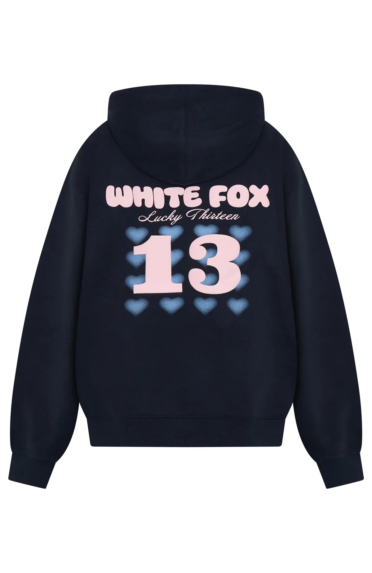 Nothing beats that new lounge feeling - introducing the Lucky Thirteen Charise Zip Front Hoodie Navy! Designed with a relaxed hood, slouched shoulders and ribbed hems which round out an oversized silhouette. Featuring long sleeves, front zipper closure, a roomy front pocket, and an unlined fleece interior, this hoodie delivers a cozy feel. White Fox puff‑print text embellishes the side front and centre back, paired with a printed graphic. Style with the matching Lucky Thirteen Charise Wide Leg Sweatpants for a look we love!