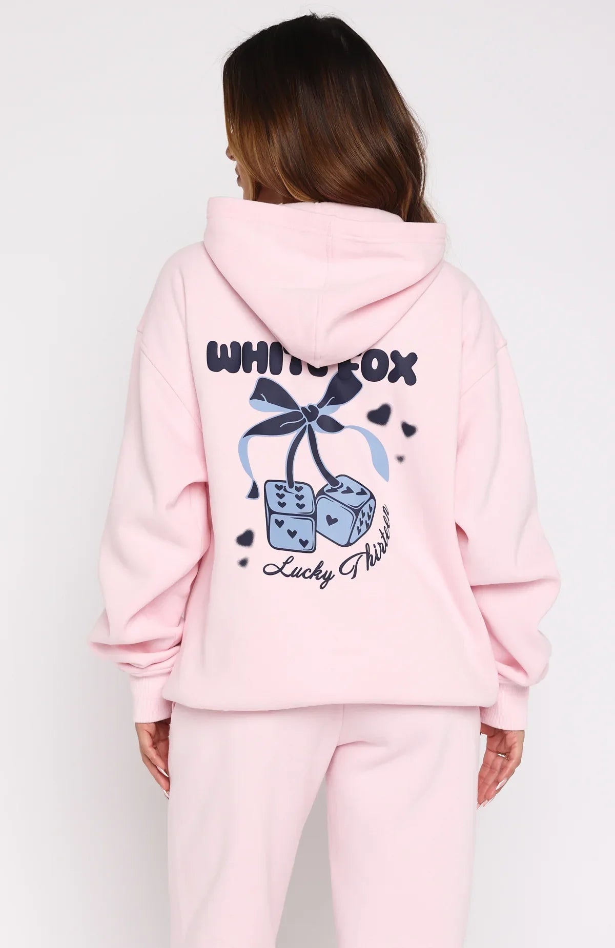 A cute staple with serious street cred, introducing the Lucky Thirteen Cheyenne Oversized Hoodie in Soft Pink! Designed with a relaxed hood, drop shoulder design, ribbed hem and cuffs, oversized fit, a roomy front pocket, soft fleece interior for a cozy feel, White Fox puff print text side front and centre back, and printed graphic detailing. For the ultimate cosy street style fit pair with the matching Lucky Thirteen Cheyenne Sweatpants!