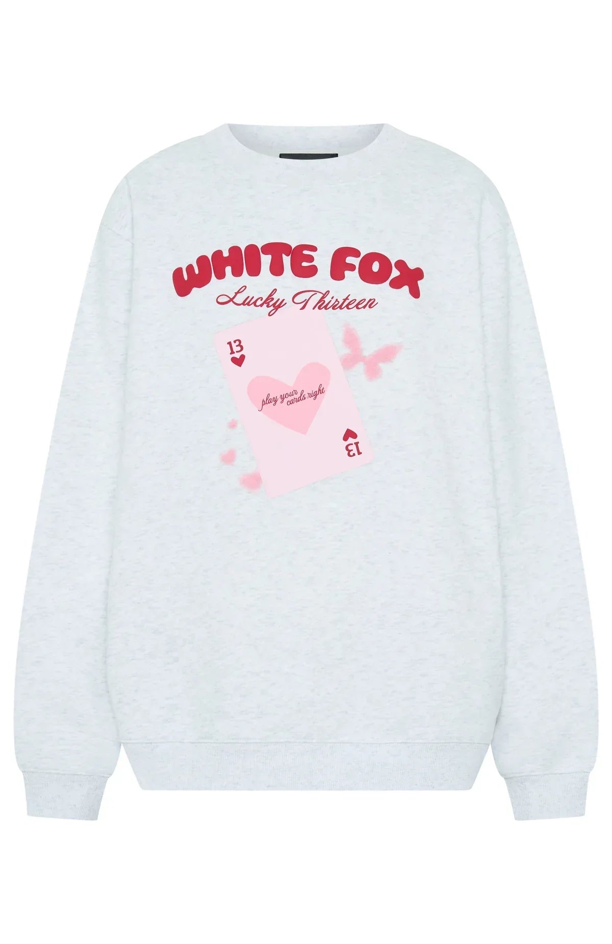 The Lucky Thirteen Kalena Oversized Sweater Grey Marle will keep those winter chills at bay! Designed with slouched shoulders and ribbed hems which round out an oversized silhouette. Featuring long sleeves, and an unlined fleece interior, this hoodie delivers a cozy feel. White Fox puff‑print text embellishes the centre front, paired with a printed graphic. Style with the matching Lucky Thirteen Charise Booty Shorts.