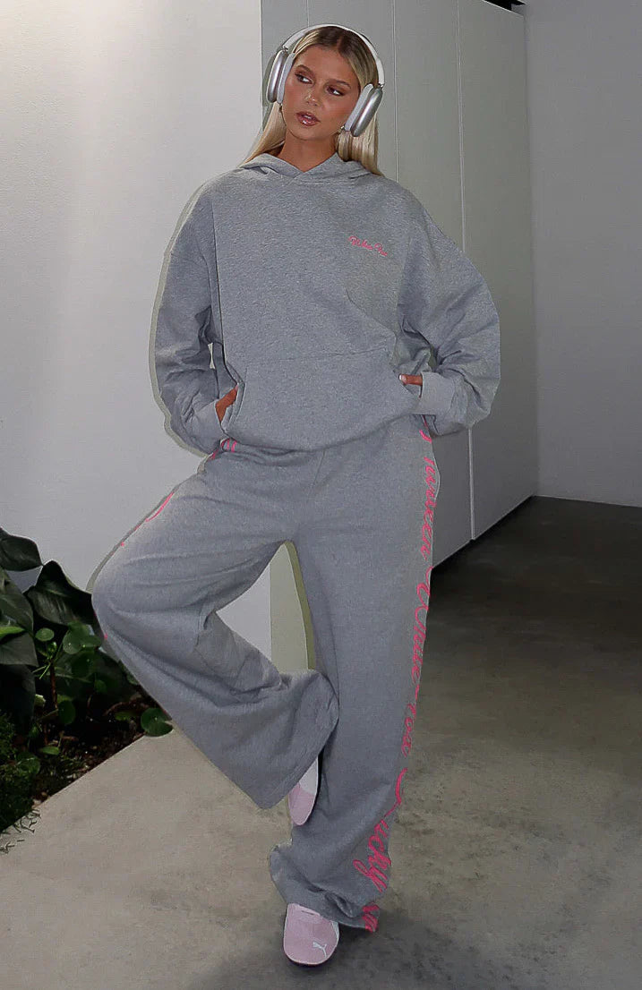 Wrap yourself in perfection with the Lucky Thirteen Shaya Oversized Hoodie in Dark Grey. Designed with a relaxed hood, slouched shoulders and ribbed hems which round out an oversized silhouette. Featuring long sleeves, a roomy front pocket, and an unlined premium loop-back interior, this hoodie delivers a cozy feel. White Fox puff‑print cursive text embellishes the side front and hood hemline. Style with the matching Lucky Thirteen Shaya Wide Leg Sweatpants.