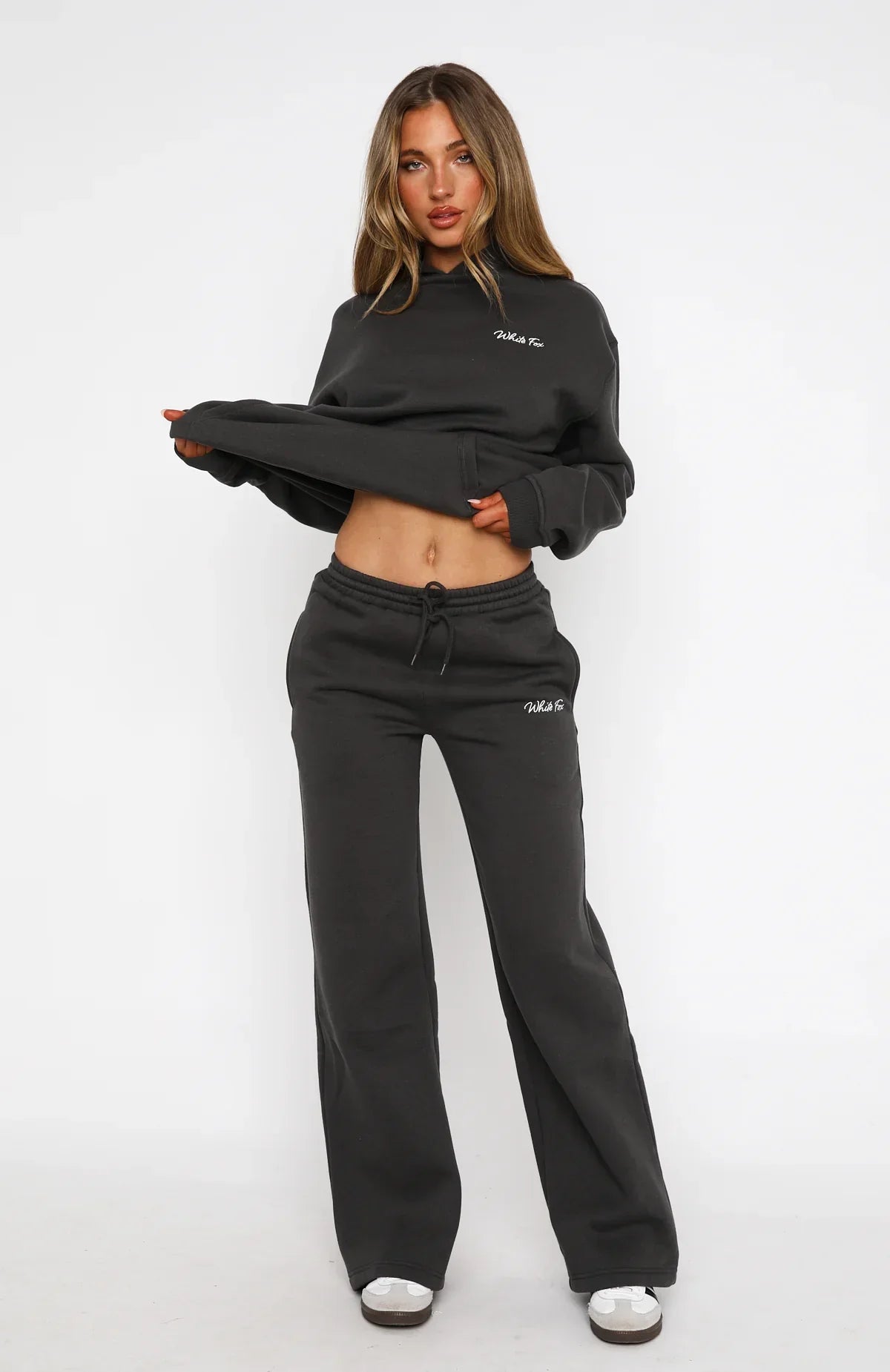 The weather may be cold, but you don't have to be in the Match Your Words Wide Leg Sweatpants Charcoal! Features a high elasticated drawstring waistband, wide leg design, side pockets, soft fleece fabric for extra comfort and WF logo on side of leg. For a cool girl matching moment pair with the Match Your Words Oversized Hoodie Charcoal!