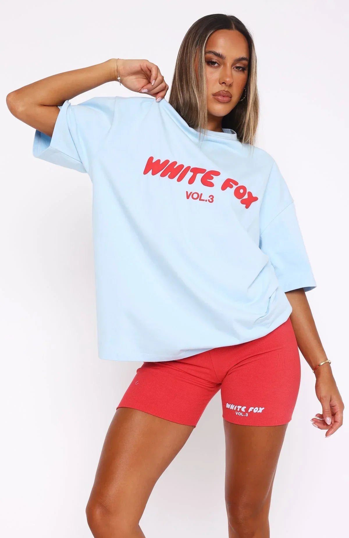 No need to steal your boyfriend's clothes when you have the Offstage Oversized Tee in Ice Pop. It is an oversized fit with slouch shoulders, round neckline, and a puff print graphic centre front. Match with the Bike Shorts in Cherry! We also love this paired with your favourite White fox denim and fresh kicks.