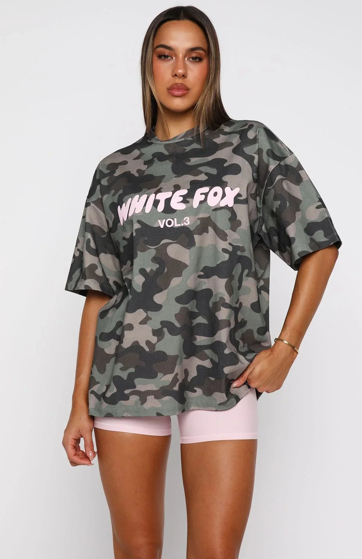 Designed for your downtime. The Offstage Printed Oversized Tee in Washed Camo features a relaxed silhouette, roomy short sleeves, and drop shoulders. A classic crew neckline anchors the look, while the puff‑print White Fox text adds subtle flair. Pair it with the matching Offstage Printed Oversized Hoodie in Washed Camo and your favourite denim jeans for an easy, cool look.