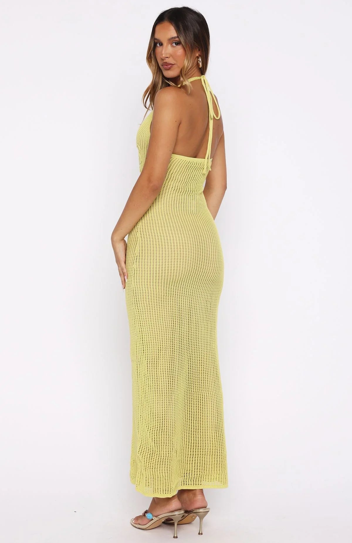 Happier in the Only You Knit Maxi Dress in Citrus! Designed with thin self‑tie halter straps, a scoop neckline, relaxed knit silhouette with a floral design, mesh lining and a slip‑on style. Pair with simple heels and layered gold jewellery to let the dress have it's moment.