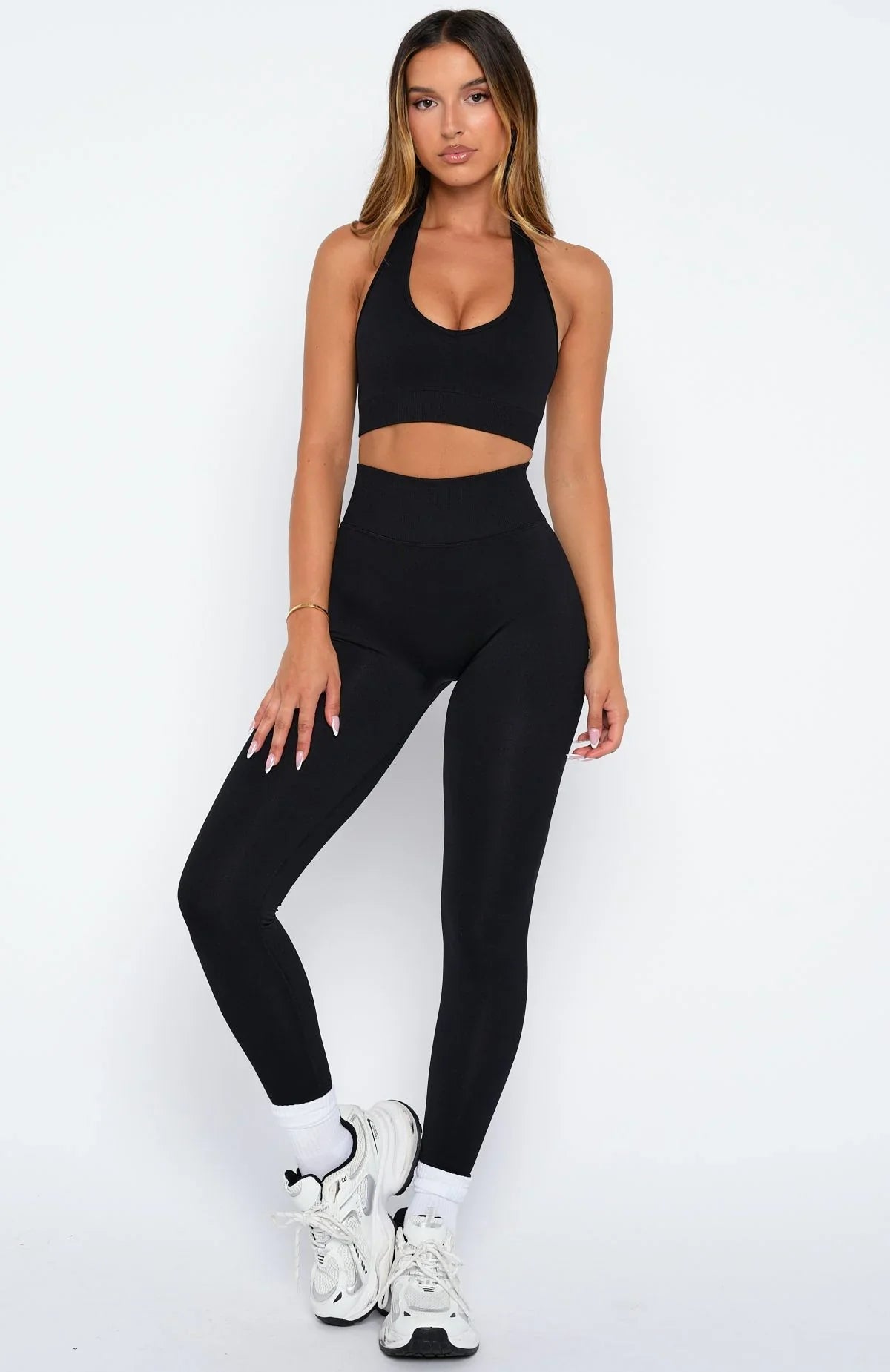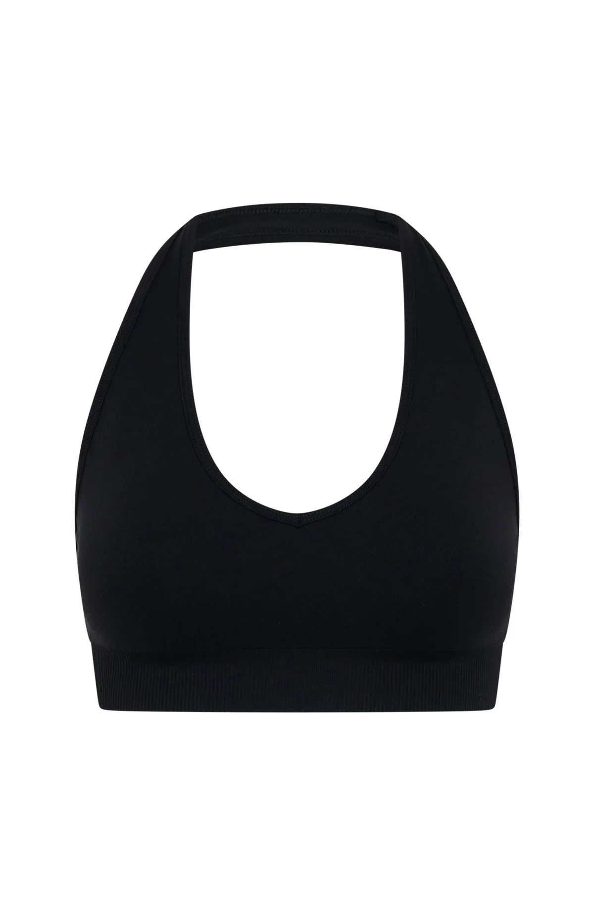 Introducing the Pace Seamless Sports Bra in Black, your daily active essential. Designed with a fixed halter strap, scoop neckline, ribbed elasticated under bust hem and removable padding for customizable comfort. Finished with WFA initials at the centre back and crafted from soft, seamless fabric. Style with the matching Charge Seamless Leggings or Zoom Seamless Shorts 4" for a flawless active fit.