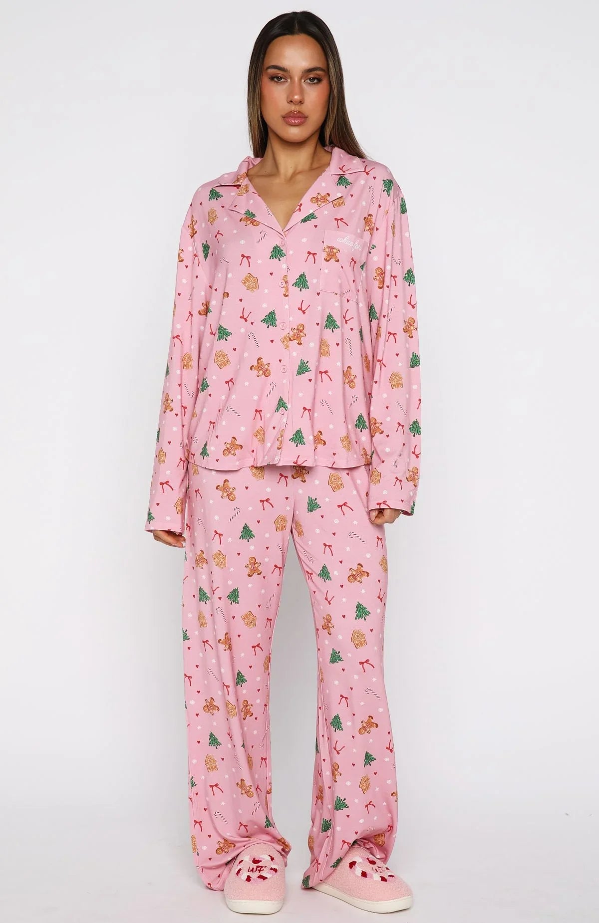 Snuggle into the season’s most irresistible loungewear: the Pillow Talk Long Sleeve Pyjama Set in Candy Kiss. This set features buttery-soft, high‑stretch fabric, a lapel neckline and front pocket with embroidered White Fox . With long sleeves, a front button closure, and a comfy elasticated waistband and lined, it’s both effortlessly practical and beautifully tailored. Pair it with your go-to Uggs for an effortlessly chic look as you curl up and drift off in style.