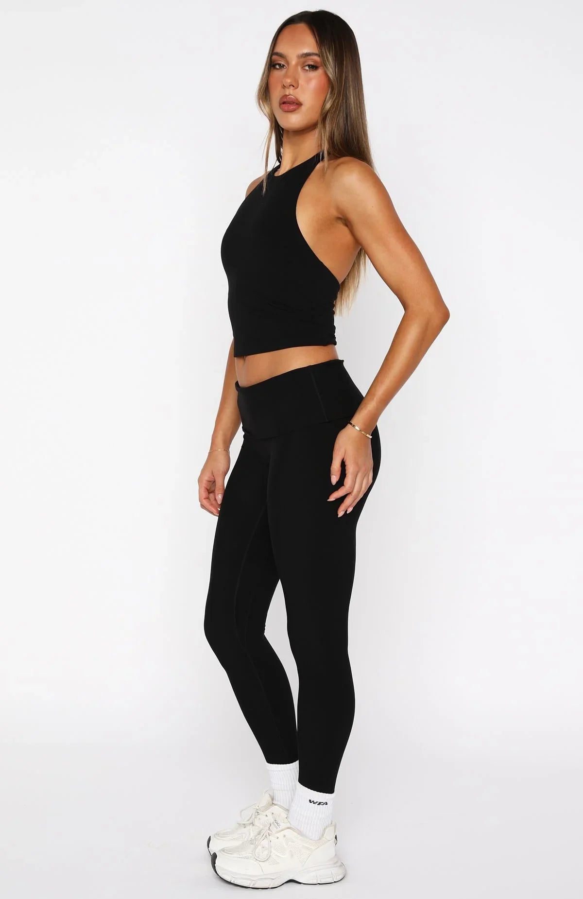 Embrace your inner Pilates princess with the Push Me Foldover Leggings Black. These leggings feature a thin elasticated waistband with a foldover design, offering a flattering fit. The fitted silhouette adds a touch of elegance, while the unlined, high-stretch fabrication ensures comfort. Finished with WFA initials at the center back. Pair with the matching Athlete Sports Bra Black.