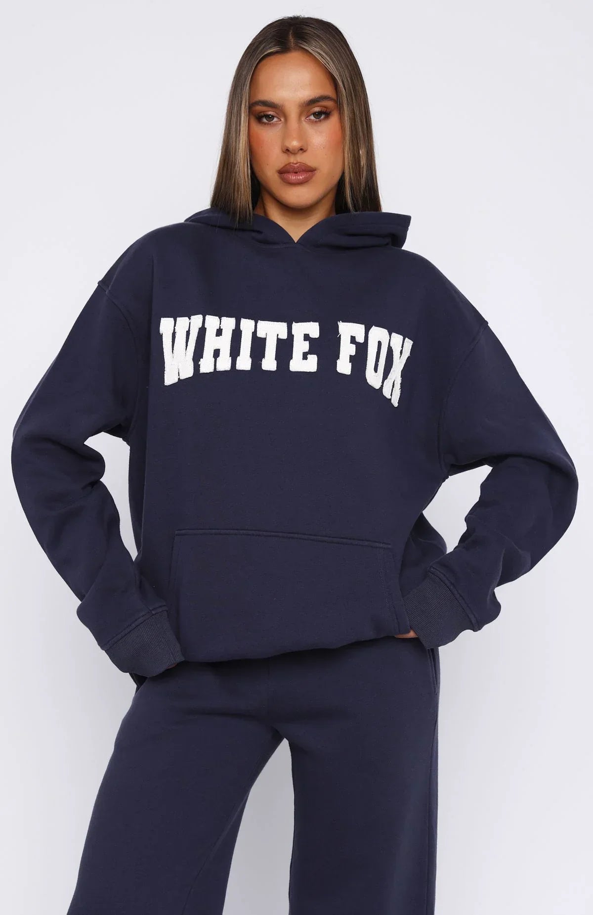Ease into the colder seasons with this oversized hoodie. The Shout It Out Oversized Hoodie Navy is an oversized fit and features elasticated ribbed cuffs & hem, hood, soft fleeced fabric for extra comfort and appliqué logo front side. Pair with your everyday bottoms and snugs for a cosy look we love!