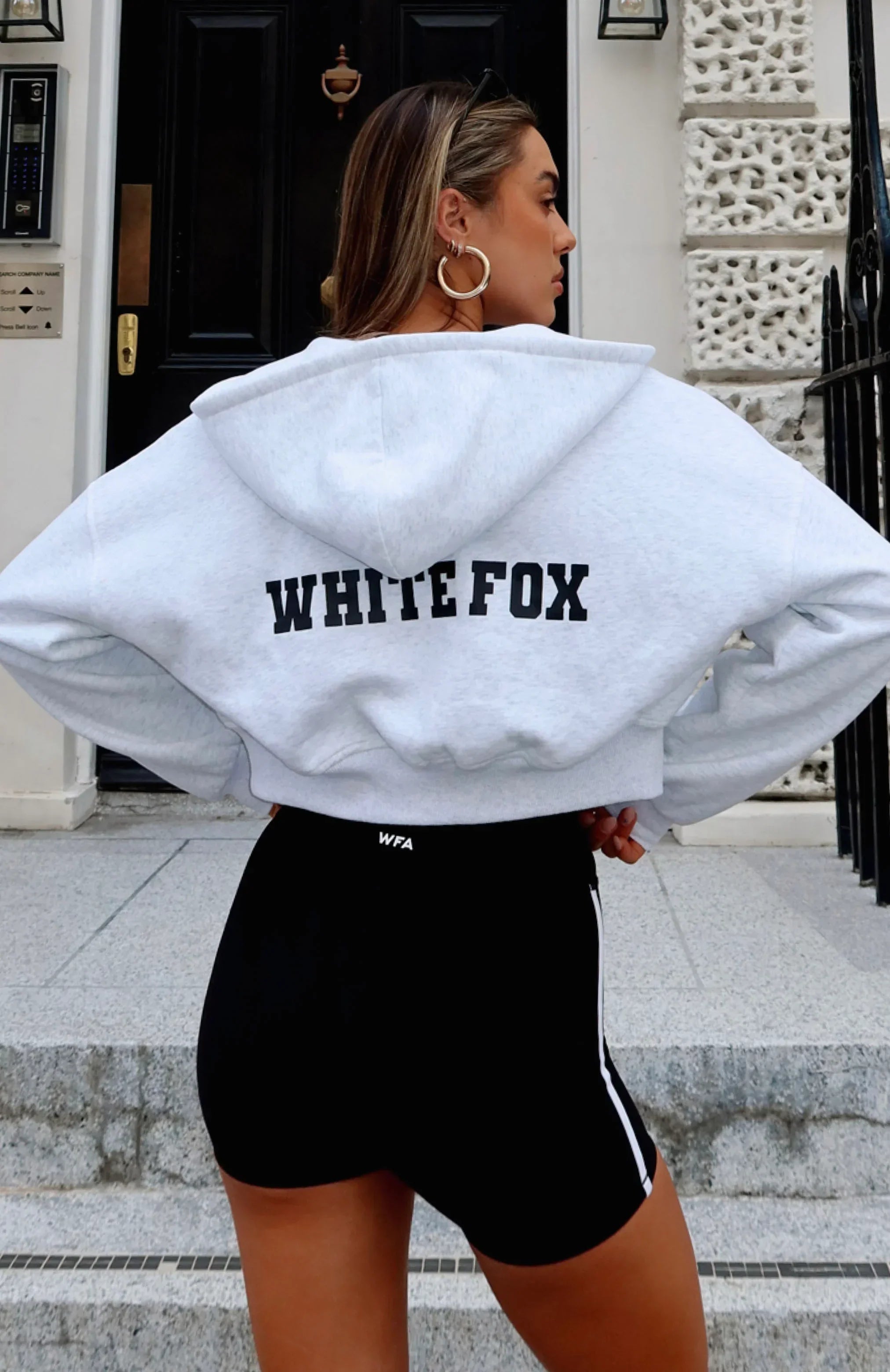 The new best part of your daily ritual: slipping on the Stepping Out Cropped Hoodie Grey Marle. Features a cropped length, oversized fit and features elasticated ribbed cuffs & hem, hood, zip fastening, soft fleeced fabric for extra comfort and side front and centre back printed logo. Complete the look with bike shorts and sneakers for a comfy and cosy look!
