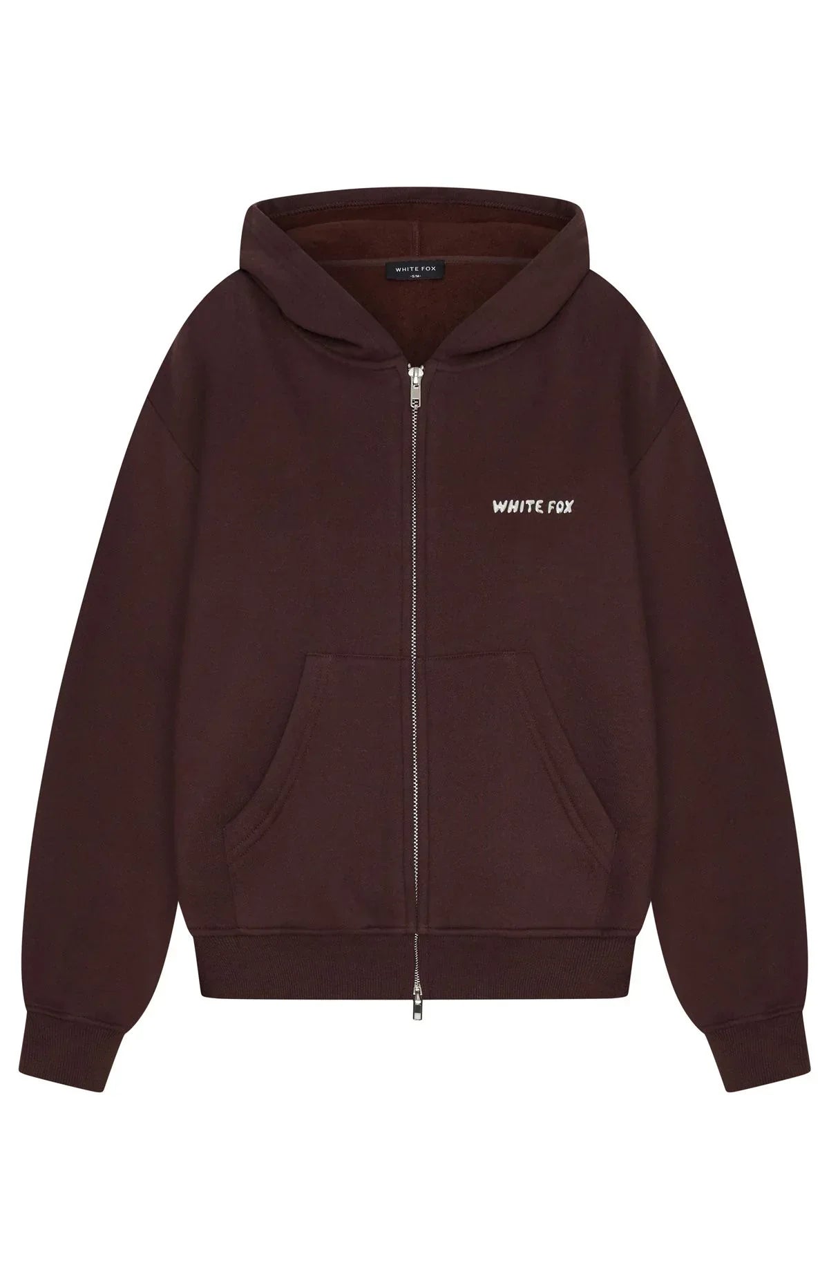 Lounge lovers are obsessed with the Test Drive Boxy Zip Front Hoodie in Chocolate! Designed with a relaxed hood, slouched shoulders, ribbed cuffs, and ribbed waist panel for a cinched look. This boxy fit hoodie features long sleeves, front zipper double ended closure, and an unlined fleece interior, this hoodie delivers a cozy feel. Finished with puff print metallic White Fox text side front. Style with the matching Test Drive Lounge Shorts for a cozy yer cool fit.