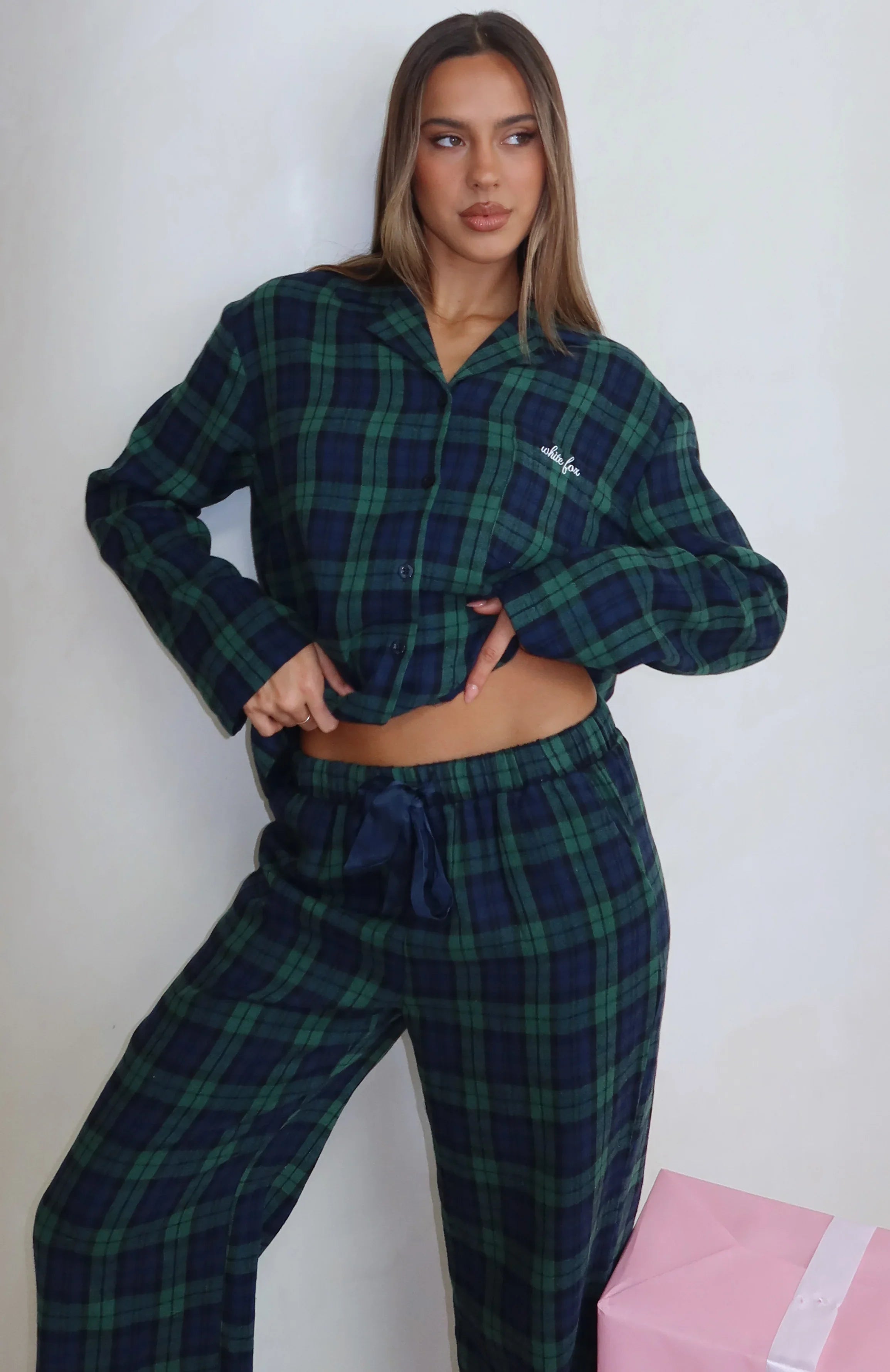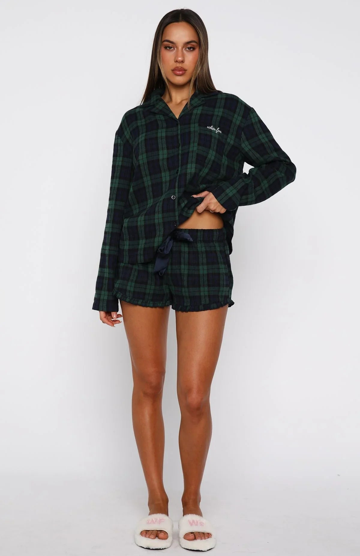 Santa, I’ve been nice! The That Time Of Year Long Sleeve Pyjama Top Green/Navy features a collared neckline, slouched shoulders, long sleeves, and a relaxed silhouette. It has a functional button front, a side pocket detailed with embroidered White Fox text, and is unlined for ultimate comfort. Pair with That Time Of Year Pyjama Pants Green/Navy or That Time Of Year Pyjama Shorts Green/Navy.