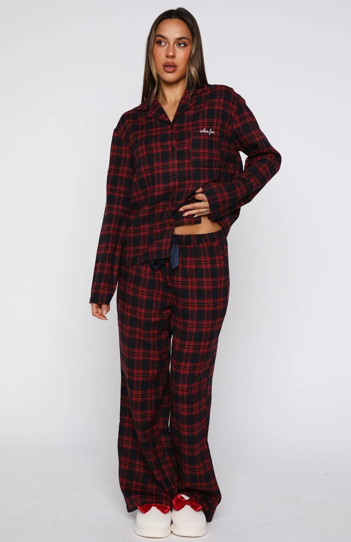 Santa, I’ve been nice! The That Time Of Year Long Sleeve Pyjama Top Red/Navy features a collared neckline, slouched shoulders, long sleeves, and a relaxed silhouette. It has a functional button front, a side pocket detailed with embroidered White Fox text, and is unlined for ultimate comfort. Pair with That Time Of The Year Pyjama Shorts Red/Navy or That Time Of Year Pyjama Pants Red/Navy.