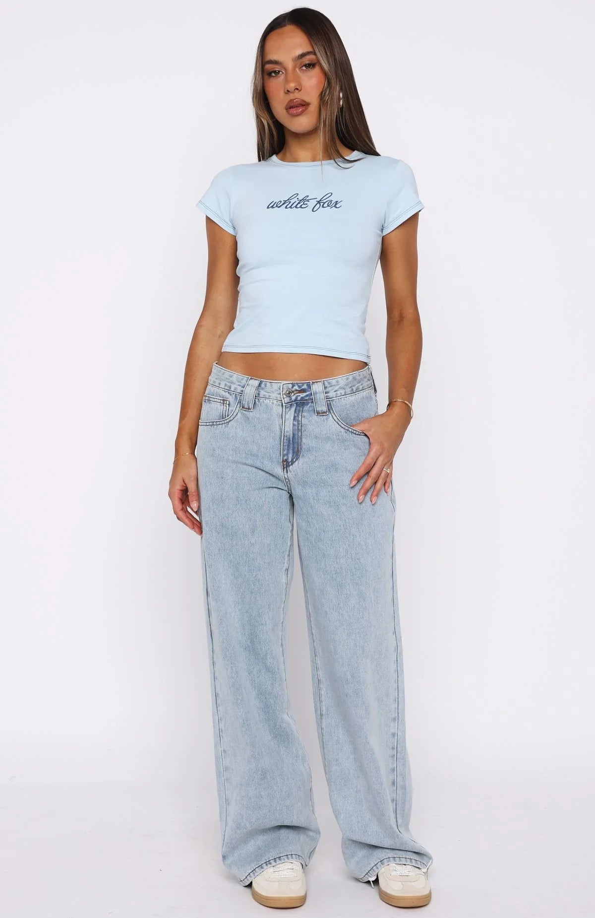 The Original Baby Tee in Blue is made for easy days and effortless style. Features short sleeves, cursive embroidered White Fox text centre‑front, a fitted silhouette, and soft stretch fabric for all‑day comfort. Style with your go-to denim jeans, sandals and layered gold jewellery for an understated but cool fit!