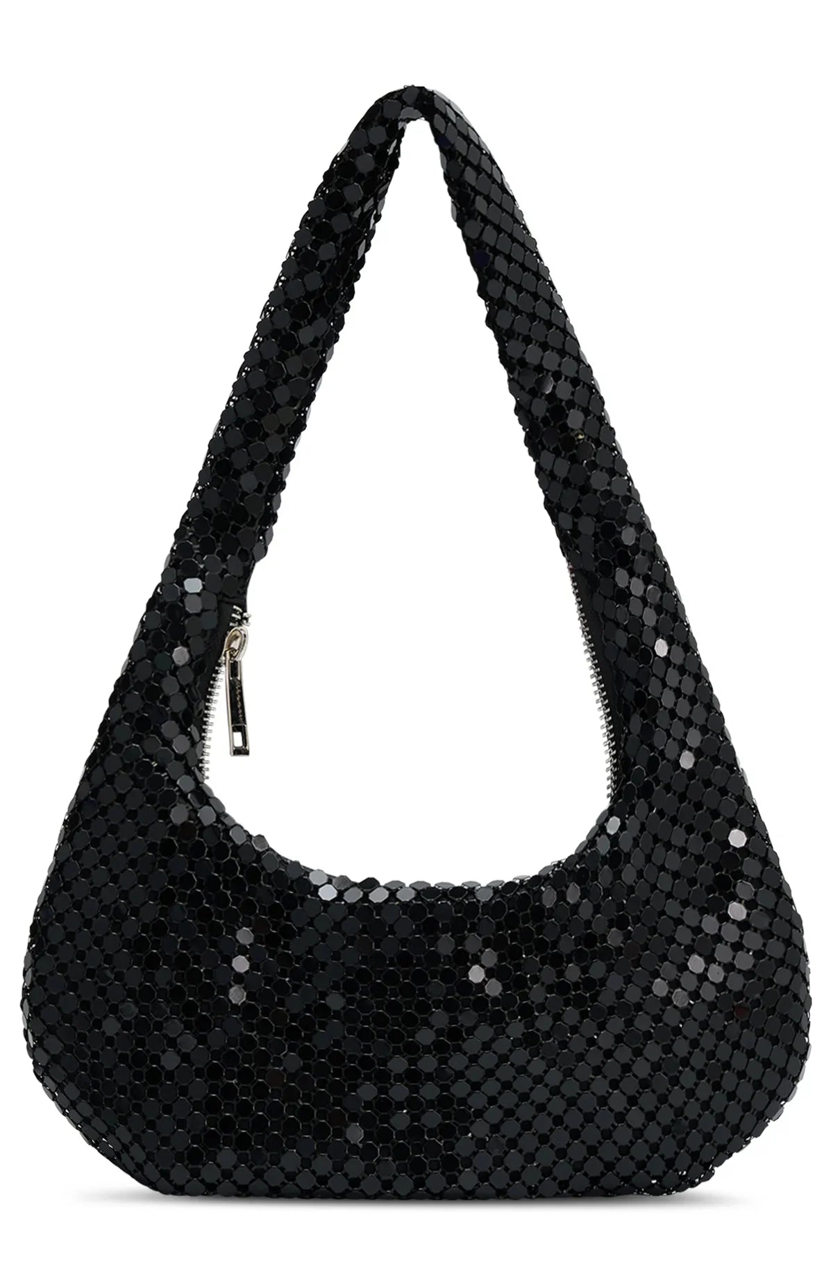 Complete your bday look with the Vanita Shoulder Bag in Black. Crafted with dazzling rhinestone crystal detailing, it features a comfortable shoulder strap and a secure zipper closure. It’s the perfect finishing touch for any party look.