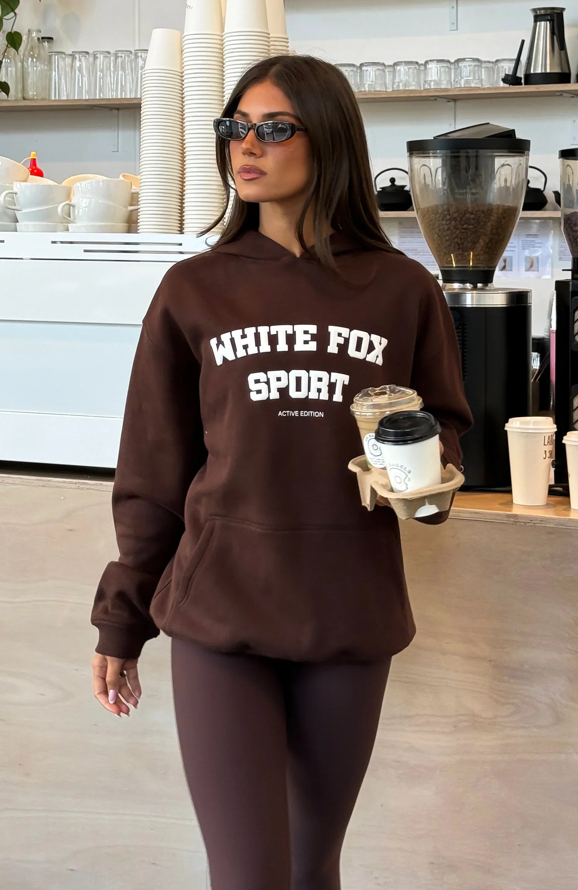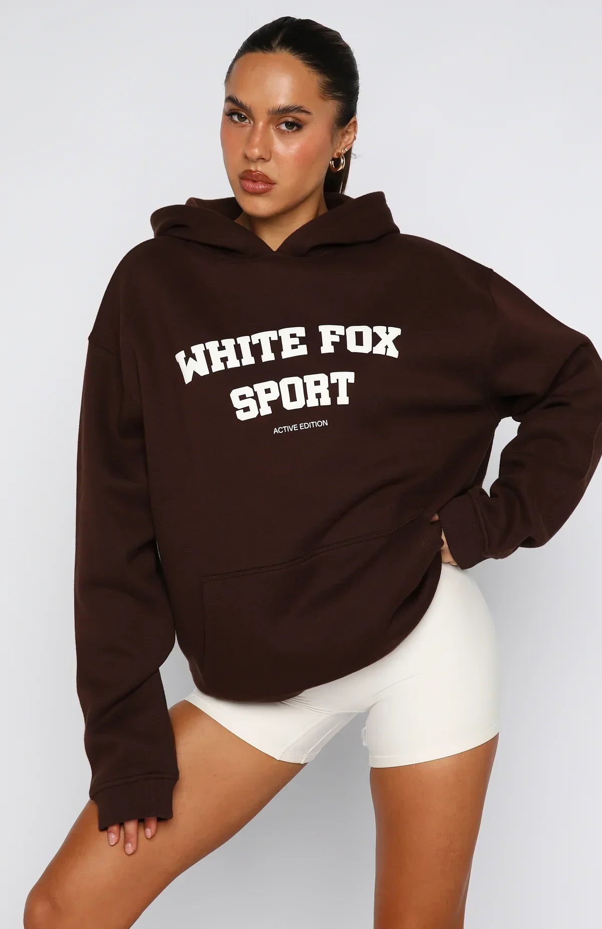 Your hoodie rotation just got cuter! Introducing the Winning Team Oversized Hoodie in Chocolate. Designed with a cozy hood and slouched shoulders, it features long sleeves with ribbed cuffs and a relaxed, oversized silhouette. The front is finished with a sporty puff‑print White Fox text and a convenient large pocket—ideal for keeping your hands warm or holding your essentials. Pair with the matching Keep Up High Waisted Shorts 4".