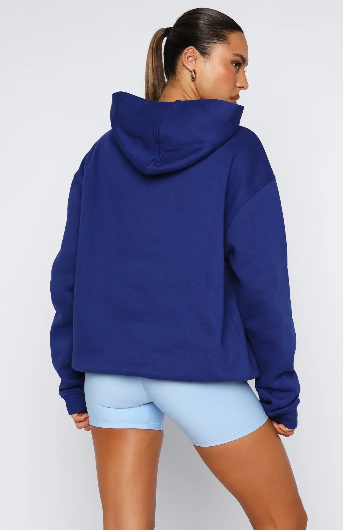 Your hoodie rotation just got cuter! Introducing the Winning Team Oversized Hoodie in Electric Blue. Designed with a cozy hood and slouched shoulders, it features long sleeves with ribbed cuffs and a relaxed, oversized silhouette. The front is finished with a sporty puff‑print White Fox text and a convenient large pocket—ideal for keeping your hands warm or holding your essentials. Pair with the matching Radiate High Waisted Shorts.