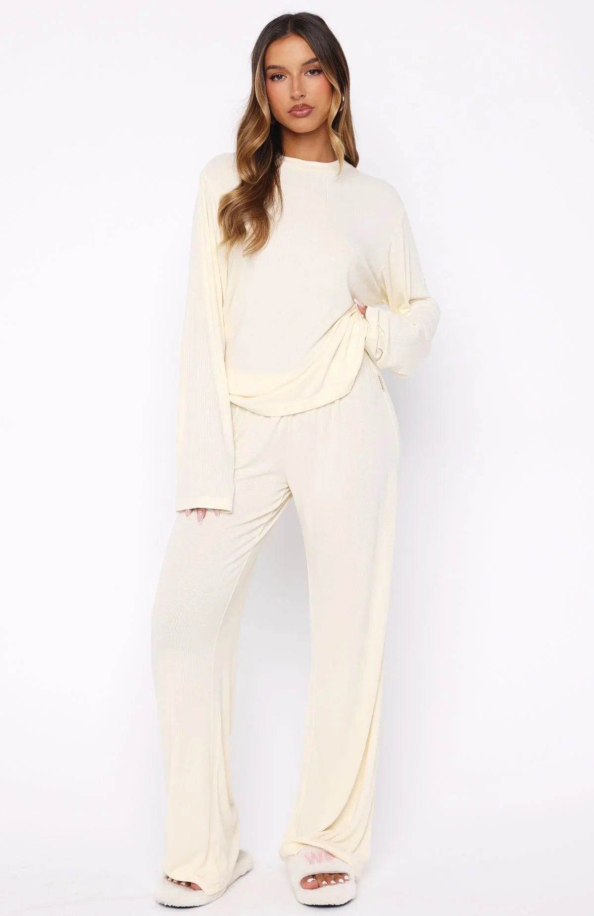 Life unedited the Wish Upon A Star Pyjama Long Sleeve Top in Off White! Featuring a classic crew neckline, slouched shoulders, long sleeves, and a relaxed silhouette. This top is crafted from the softest ribbed, high-stretch fabric you’ve ever felt. Style it with the matching Wish Upon A Star Pyjama Pants in Off White and your favourite slippers, then sit back, unwind, and drape yourself in pure comfort.