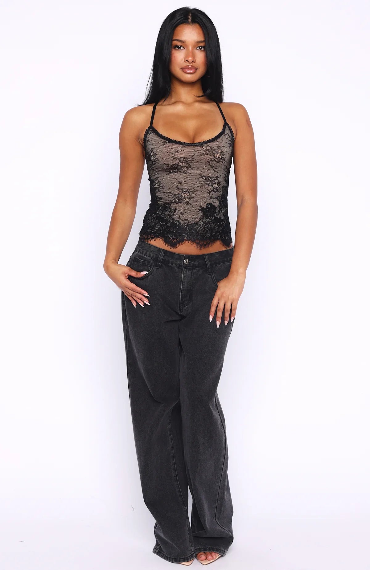 Caution: hot! The You Came Back Top Black features adjustable shoulder straps, a scoop neckline trimmed in scalloped lace and fully lined. Crafted from lace fabrication which gently drapes over the hem for a flirty finish. Style with mini shorts, heels and layered gold jewellery for a chic night out look.